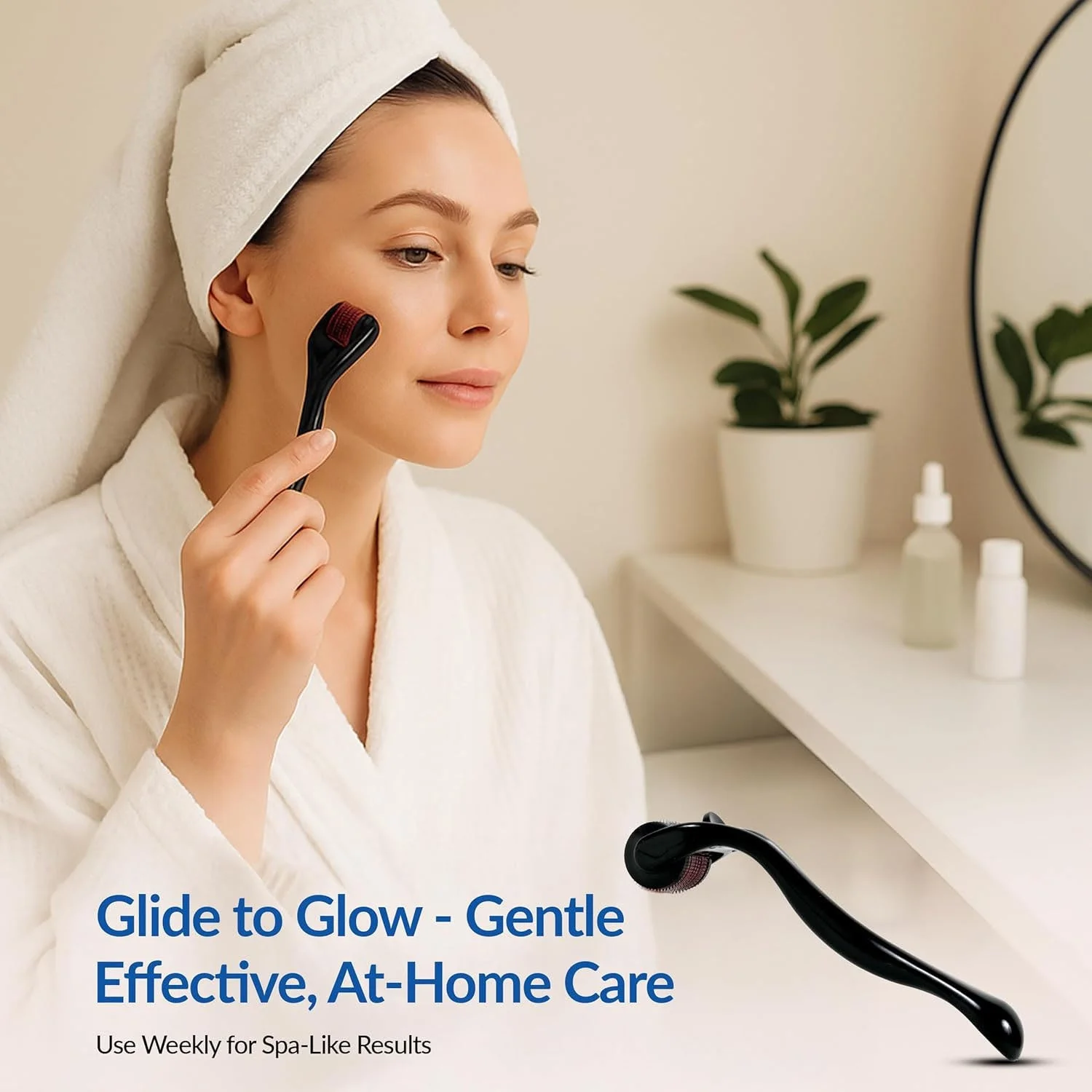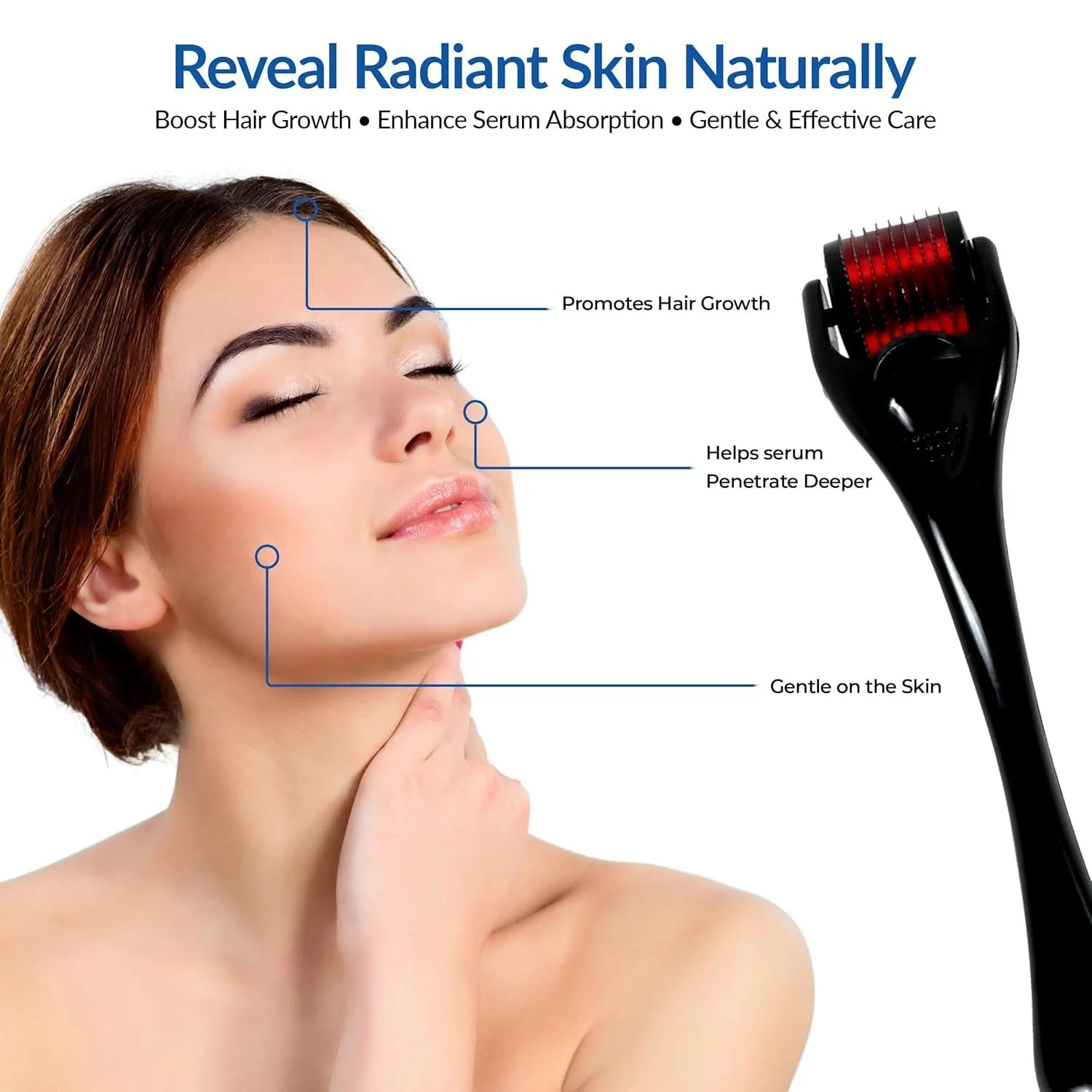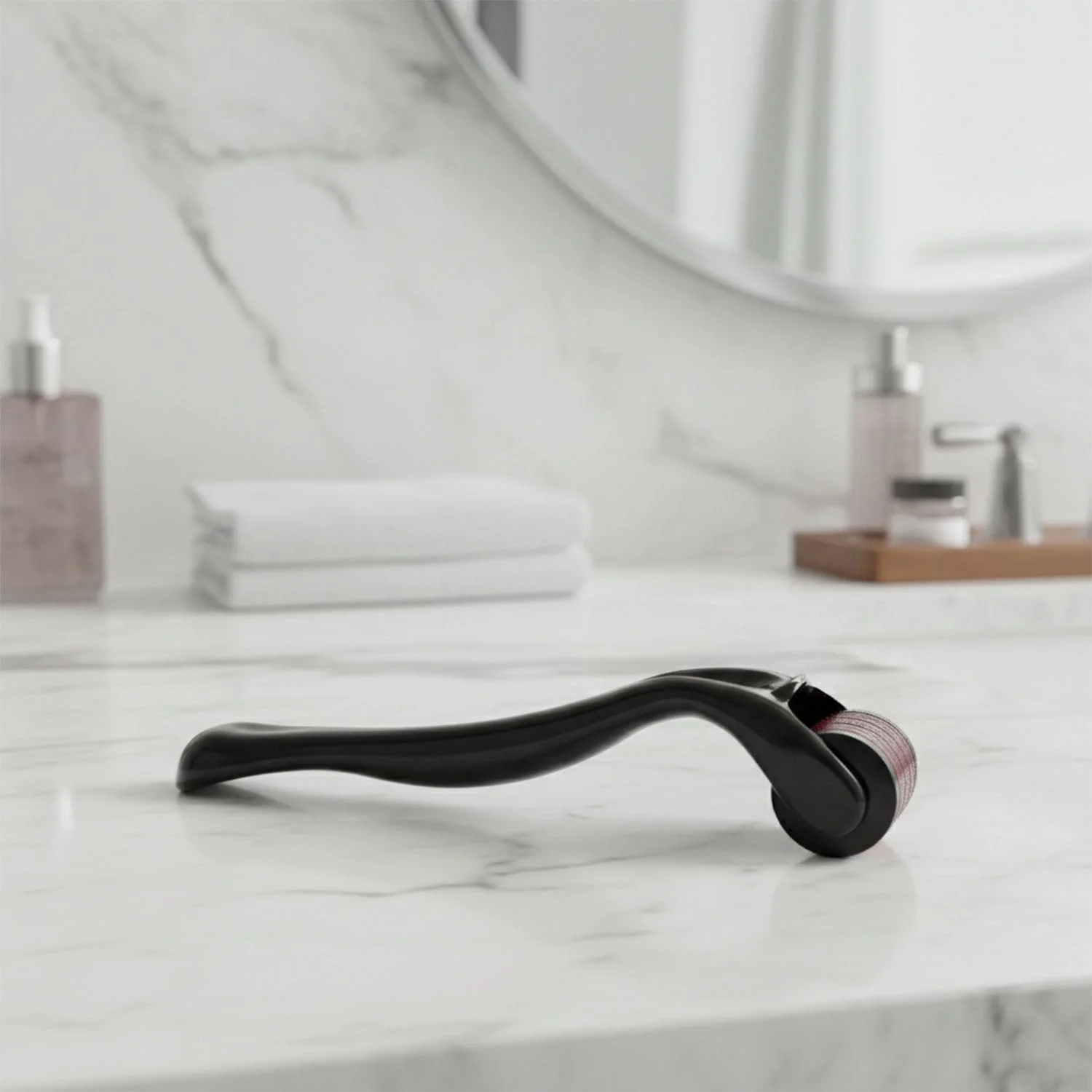 This 0.5mm derma roller is a simple yet effective microneedling tool designed for at-home skincare and scalp care routines. It helps stimulate the skin’s natural renewal process by gently creating micro-channels on the surface, which supports better absorption of serums and skincare products. Regular use can help improve the look of uneven skin texture, visible pores, and dull skin appearance. It is also widely used on the scalp to support healthier-looking hair growth routines. The ergonomic handle offers comfortable grip and smooth rolling for easy use on face, neck, jawline, and scalp areas.