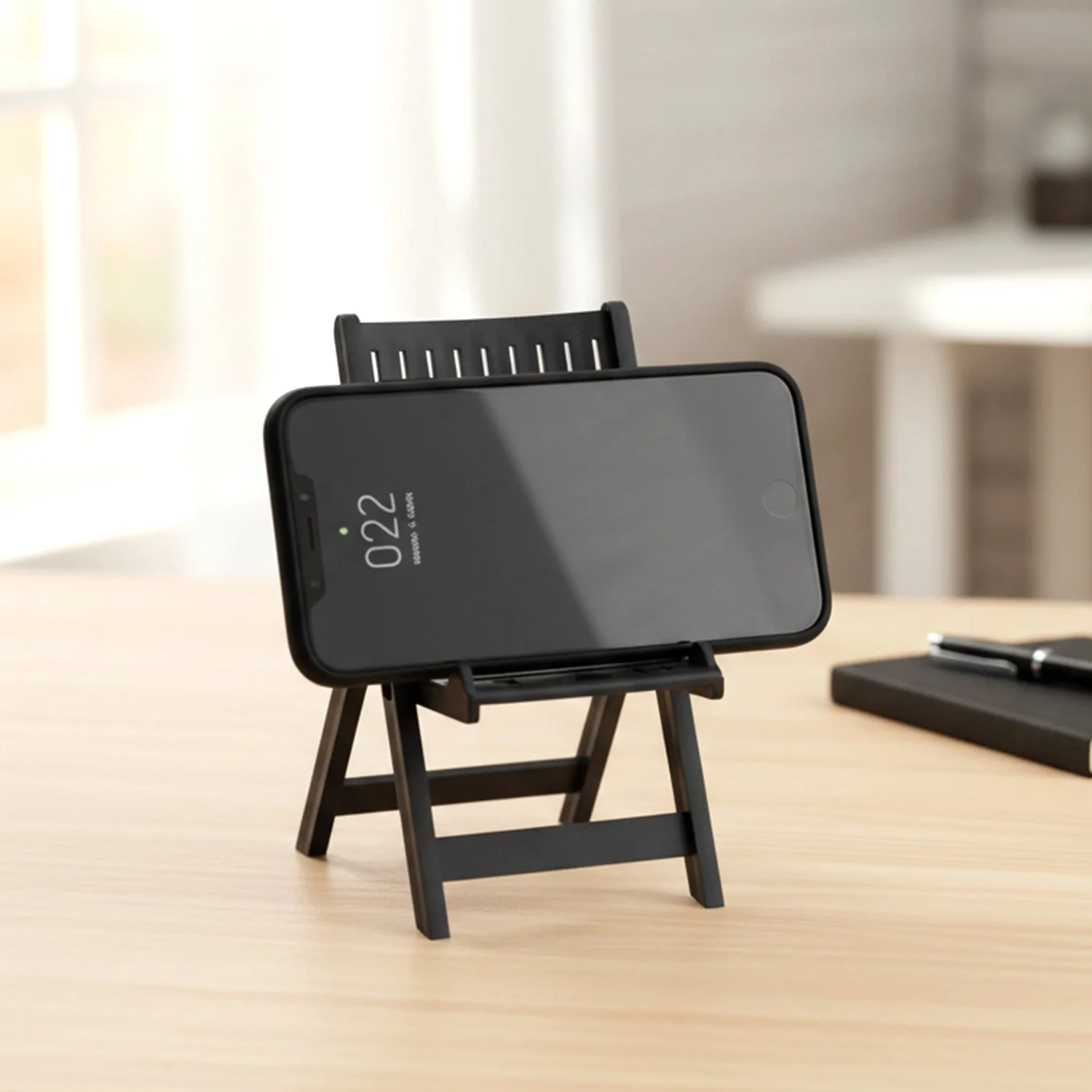 1 Piece Mini Chair Shape Mobile Stand Holder – Cute Folding Phone Stand for Desk, Table & Study Use – Adjustable Smartphone Holder for Video Calling, Online Classes, Reels Watching & Office Work (Black Color)
