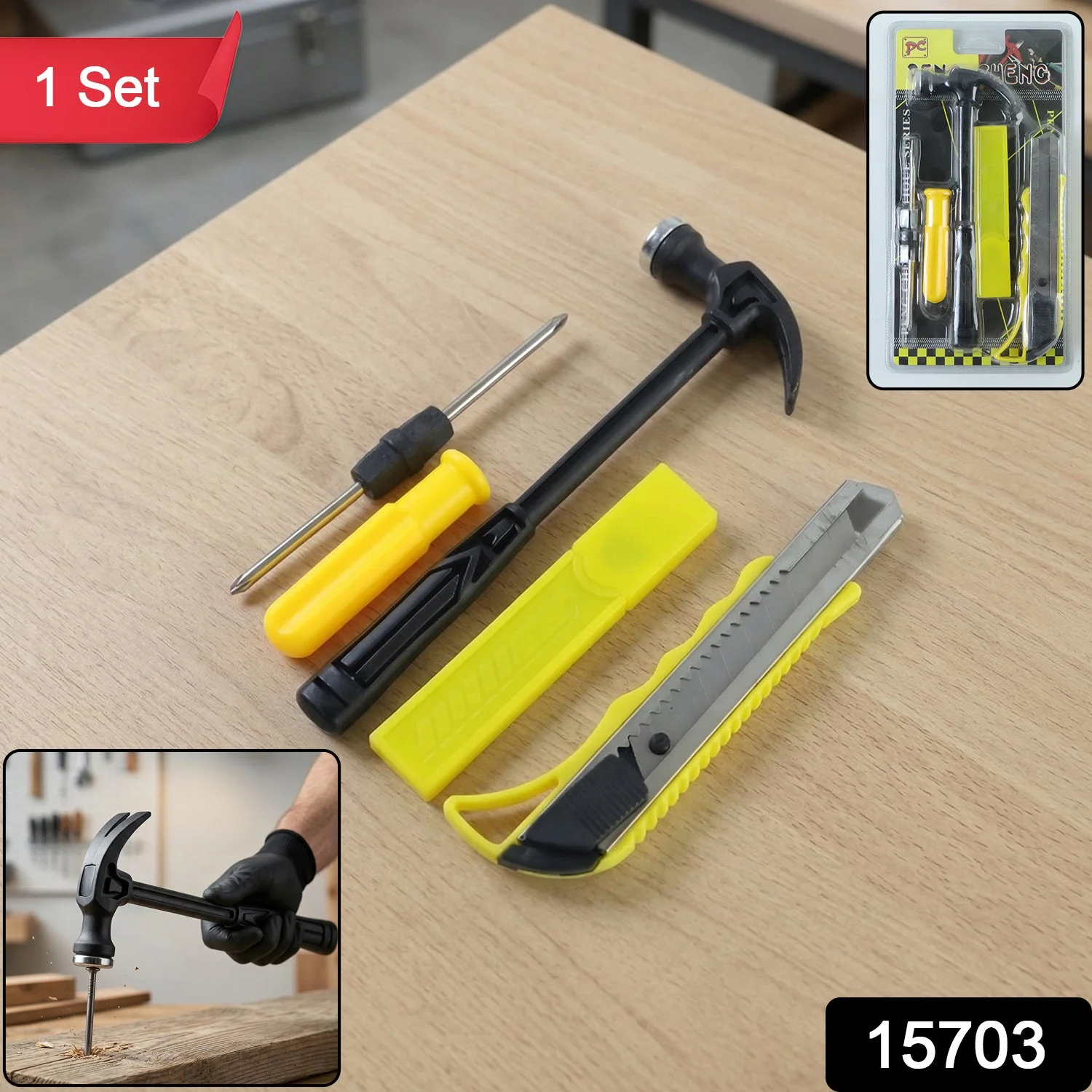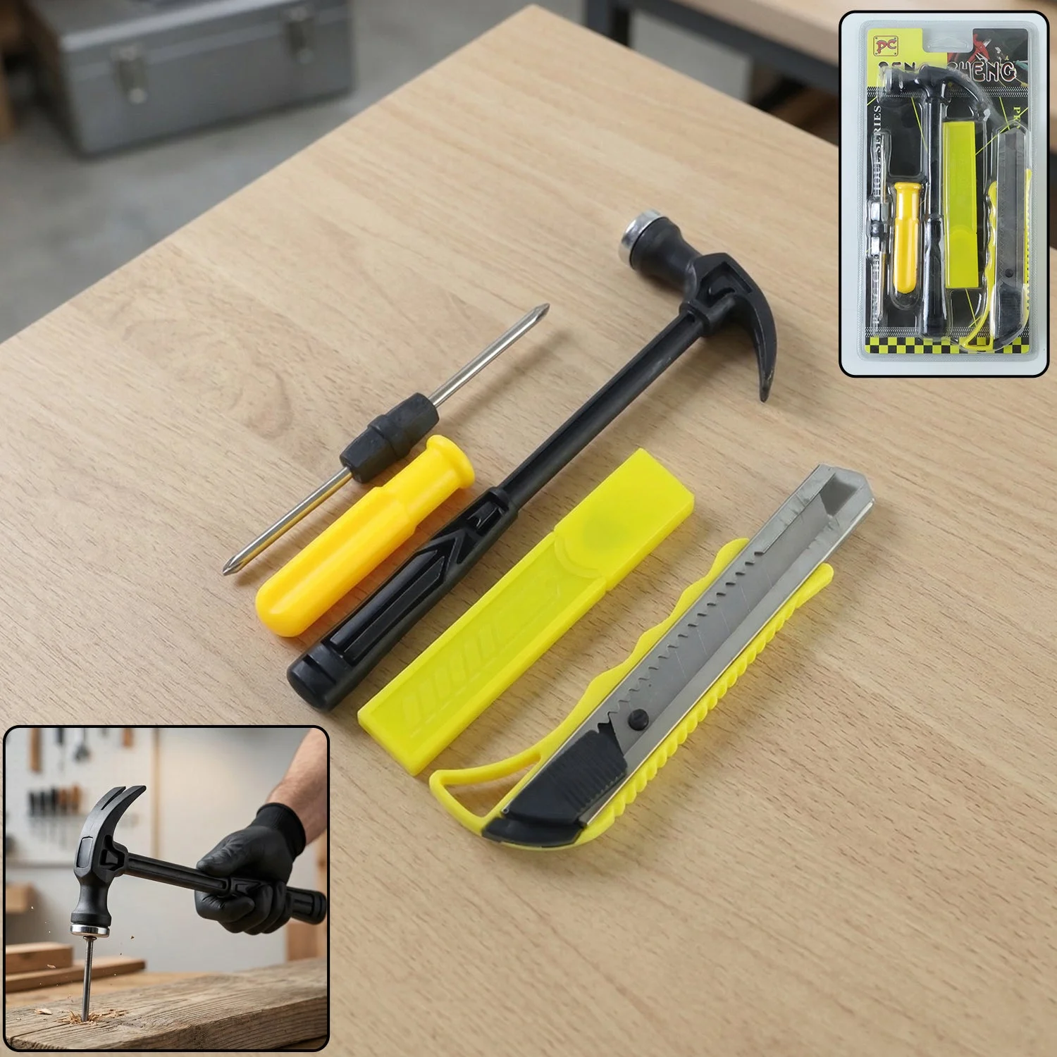 Mini Hardware Tool Kit with Hammer, Screwdriver & Cutter Set for Home Repair, DIY Projects & Daily Maintenance Use 1 Set