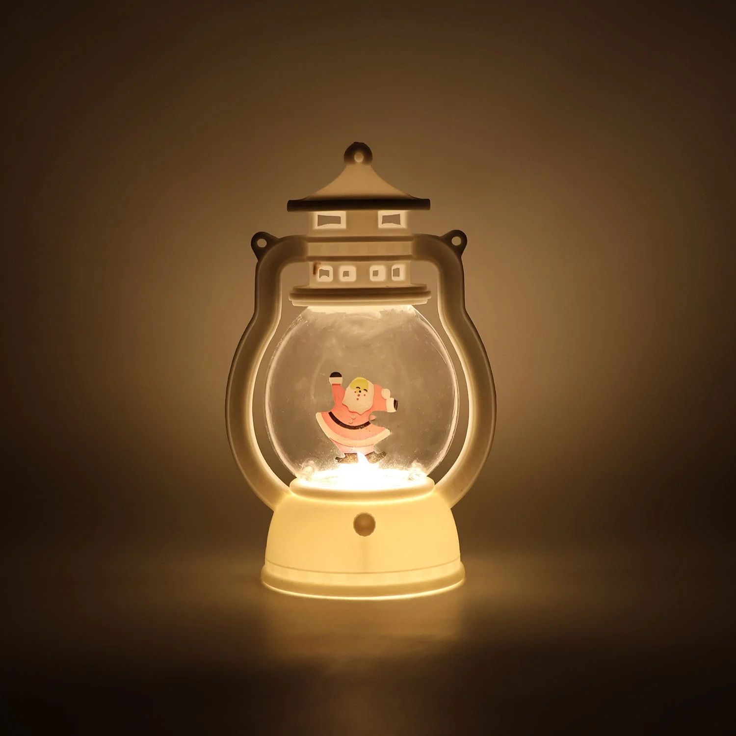 Bring instant holiday charm to any corner with this cute mini LED lantern. The clear globe showcases a cheerful Santa figurine while the warm ambient light glows softly for a cozy, festive feel. Compact and lightweight, it sits neatly on side tables, shelves, reception desks, or kids’ study areas without heating up or disturbing sleep. A simple on/off push switch makes operation effortless, and the clean, wipeable body keeps it looking fresh throughout the season. Place it by the entryway, on a mantel, or as a centerpiece accent to create welcoming Christmas vibes in seconds.