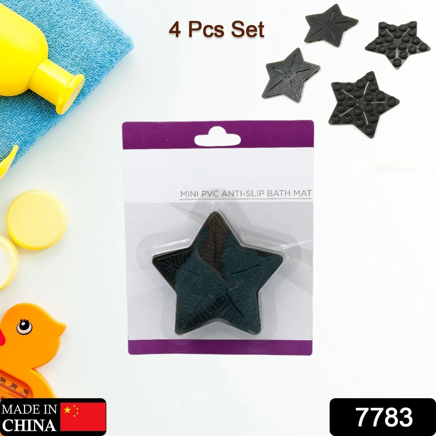 Mini PVC Anti-Slip Bat Mat Non Slip Baby Bath Mats, Mini Child Safety Anti Slip Shower Mats Star Shaped for Kids (4 pc Set)
