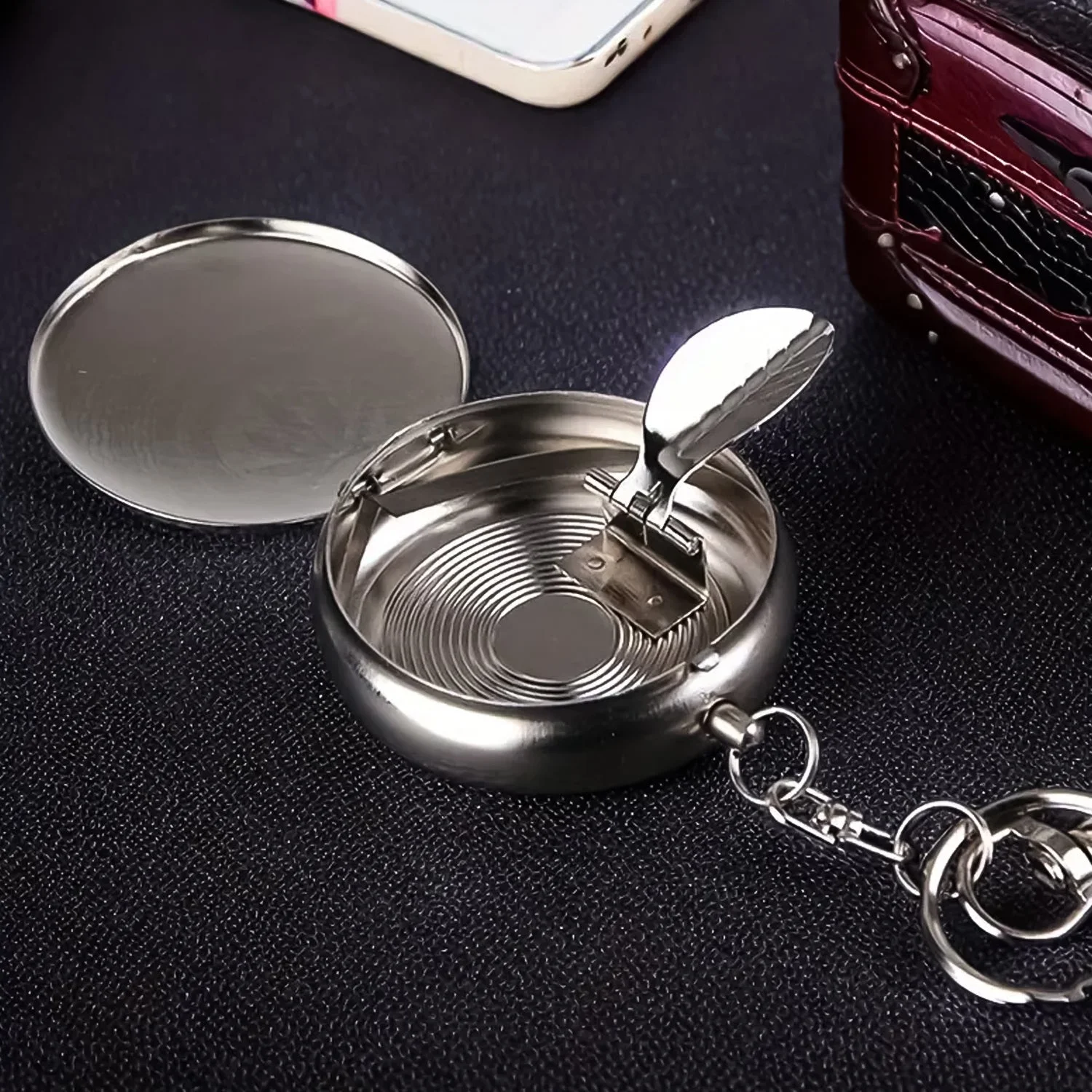 Mini Stainless Steel Ashtray with Keychain - Portable and Compact Design for On-the-Go Use, Secure Lid to Contain Ashes, Ideal for Smokers and Travelers