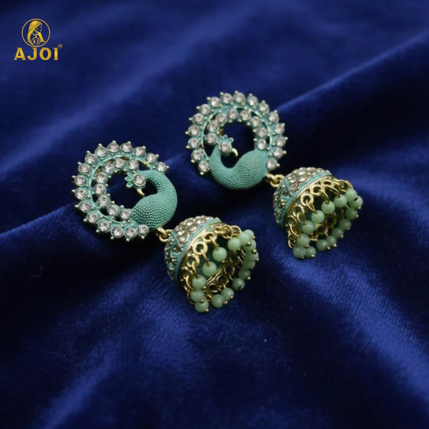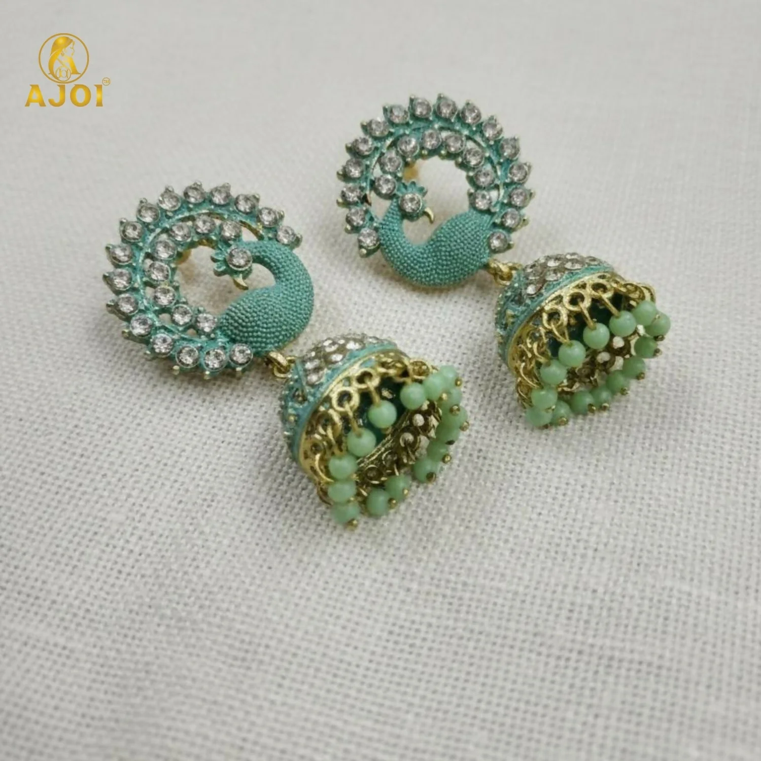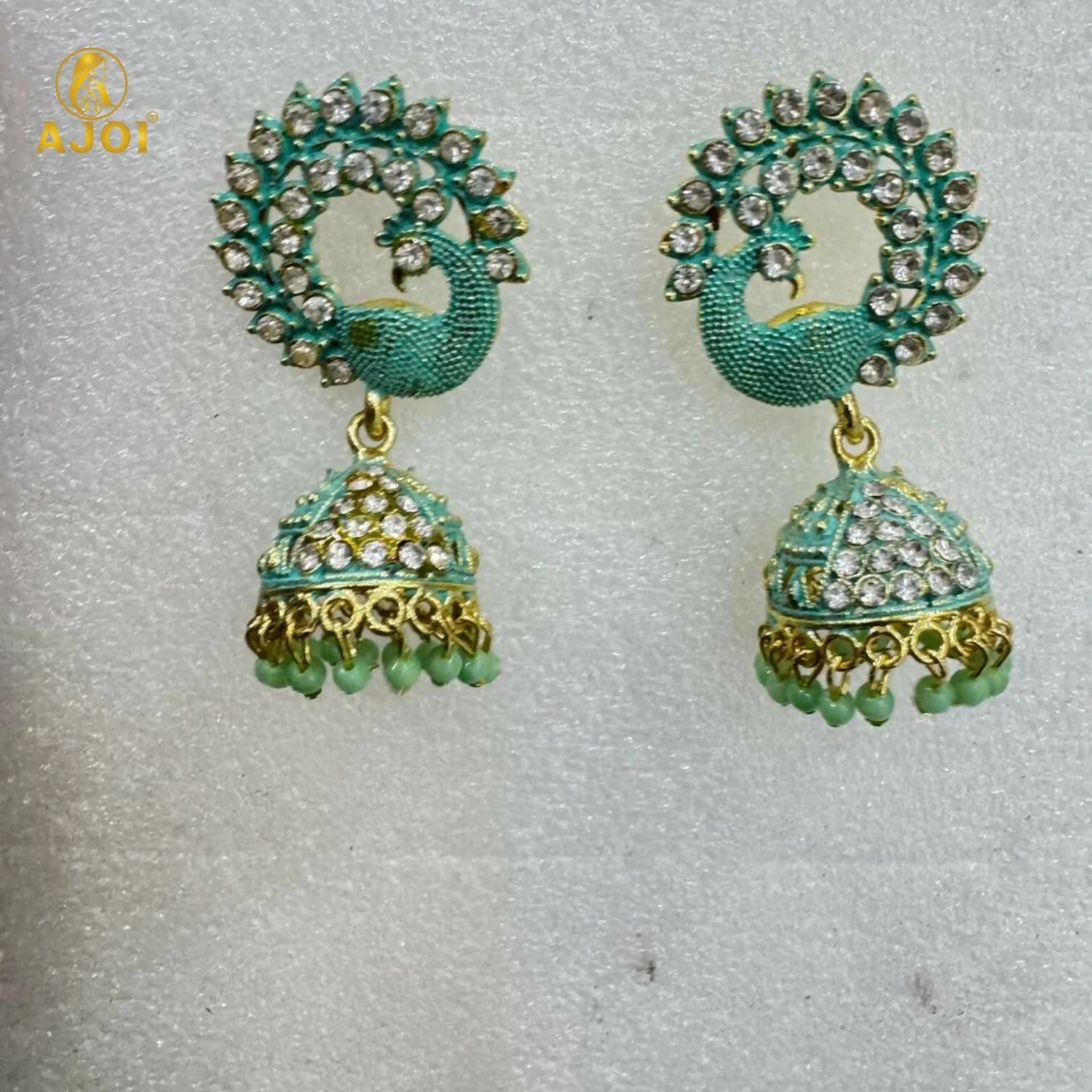 Be the first to review Mint Green Peacock Stone Jhumka Earrings!