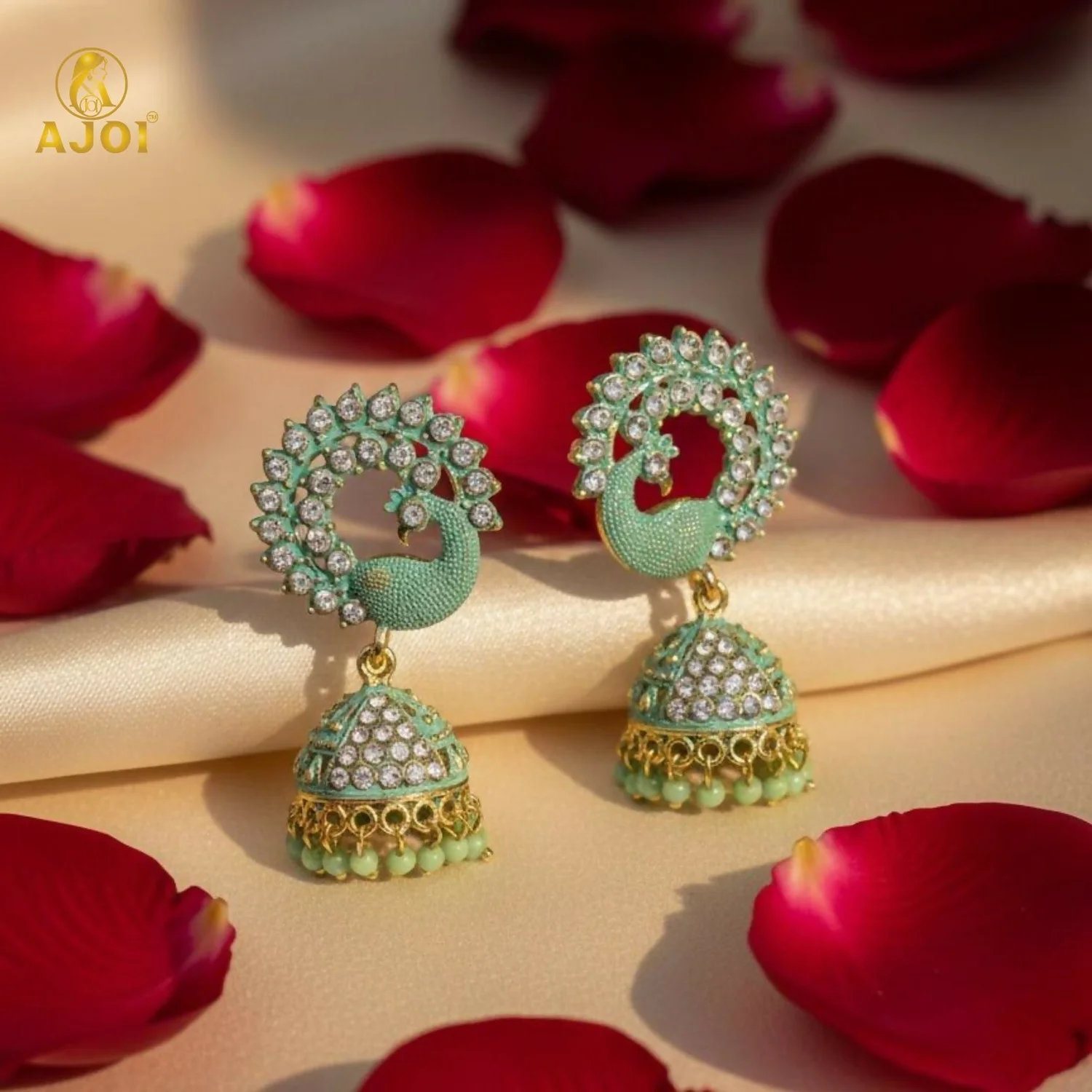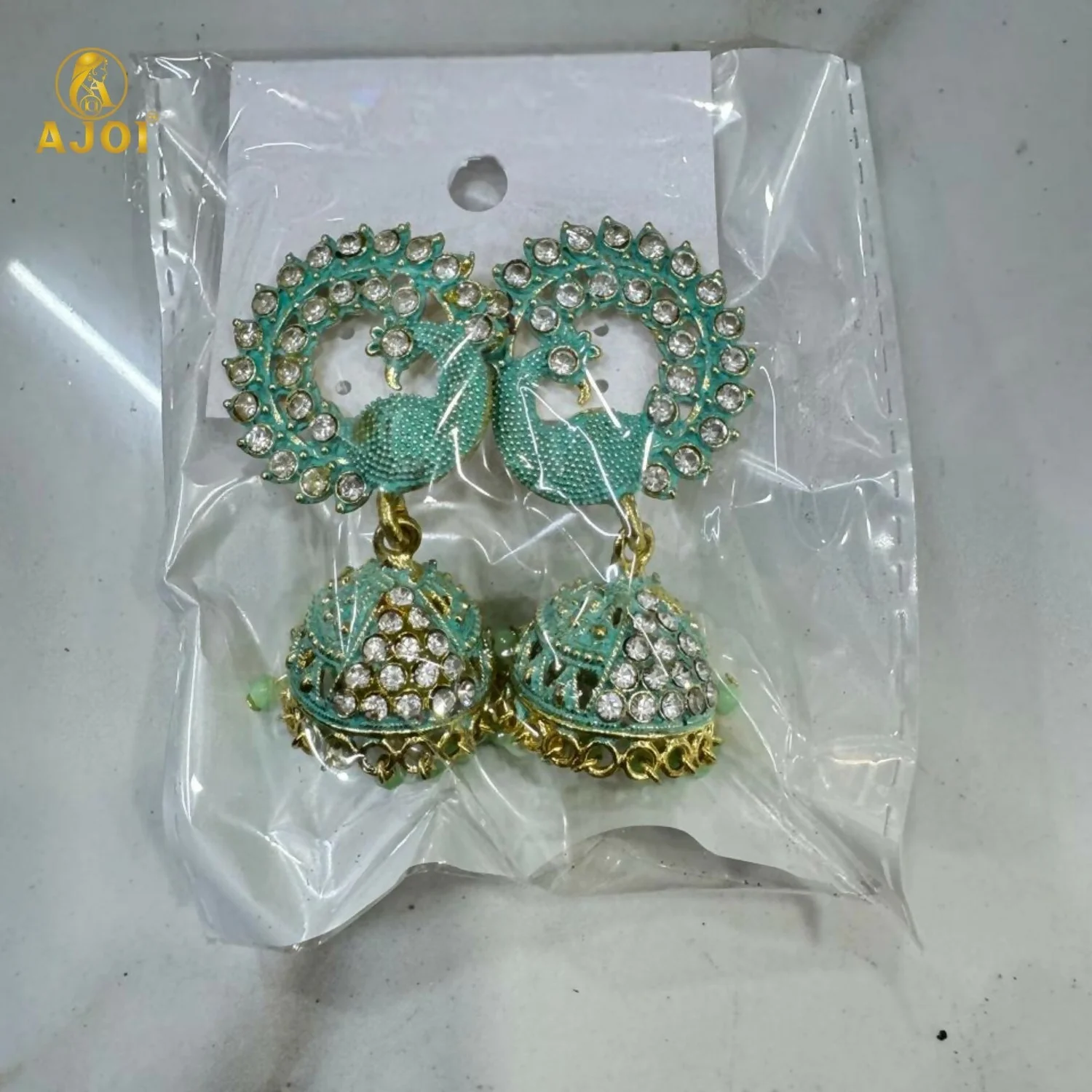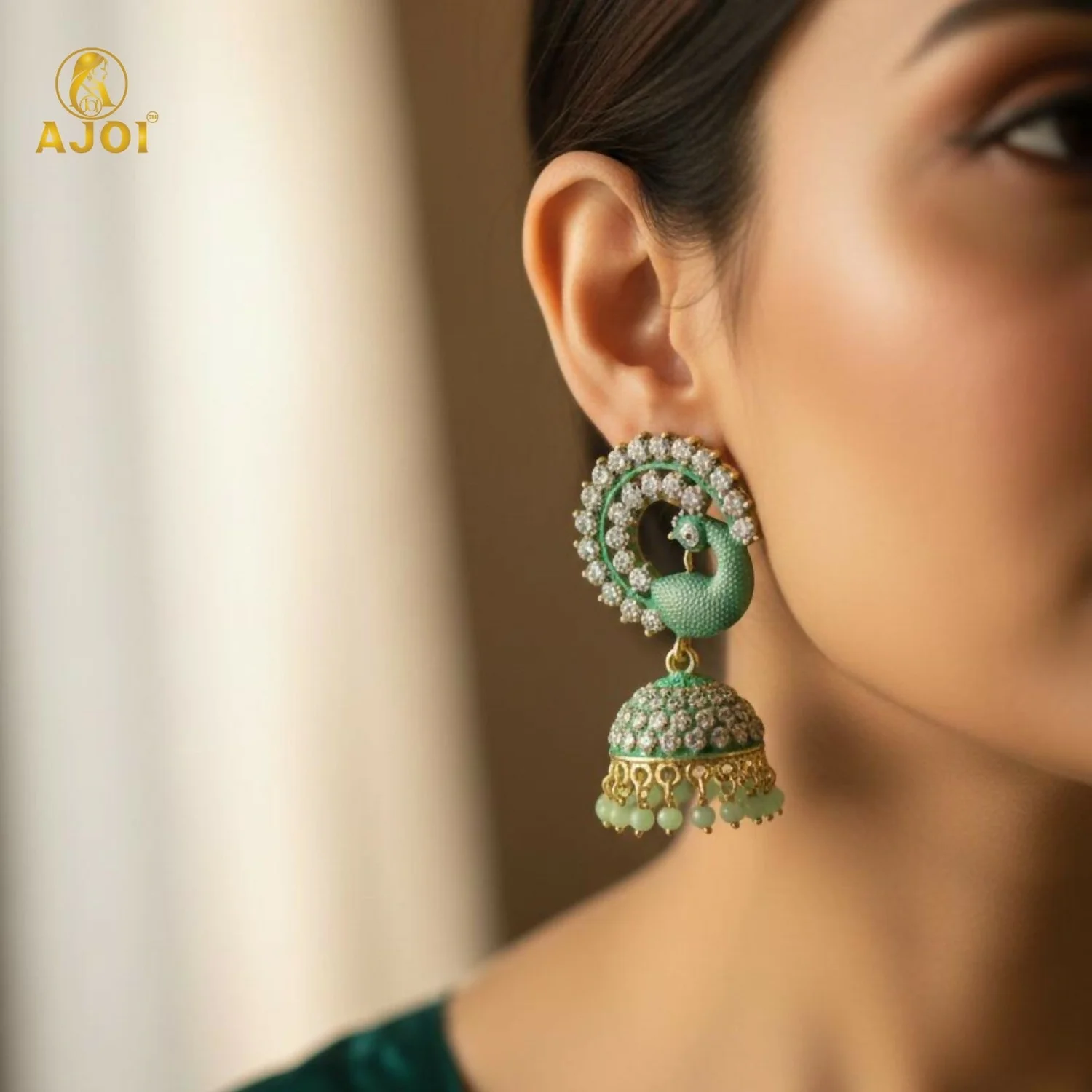 Be the first to review Mint Green Peacock Stone Jhumka Earrings!