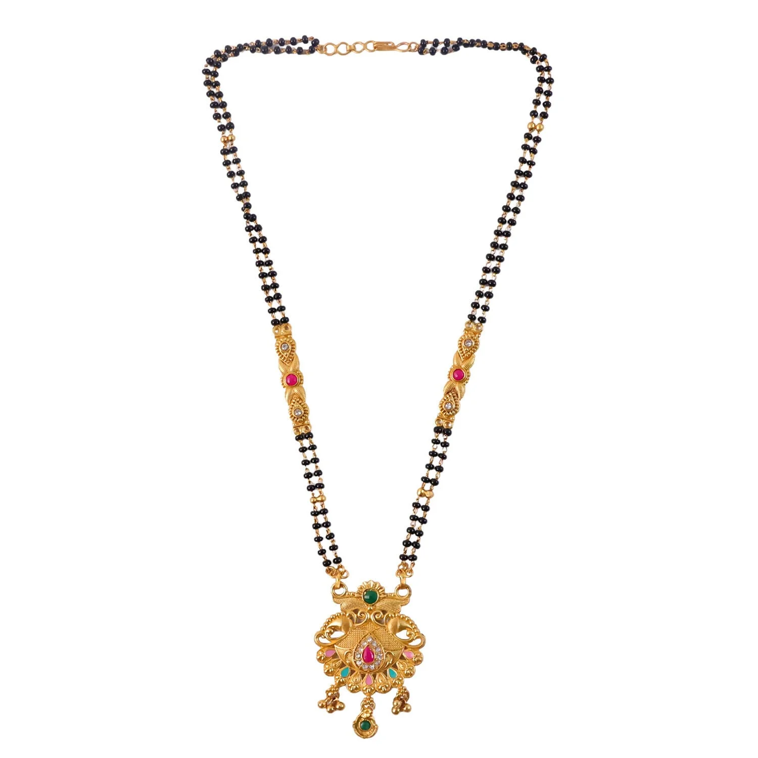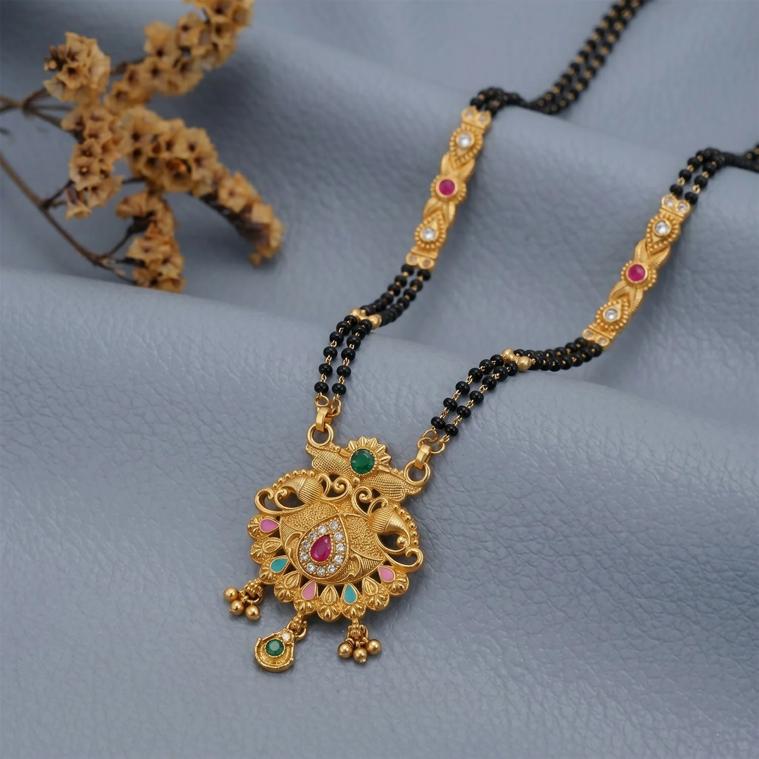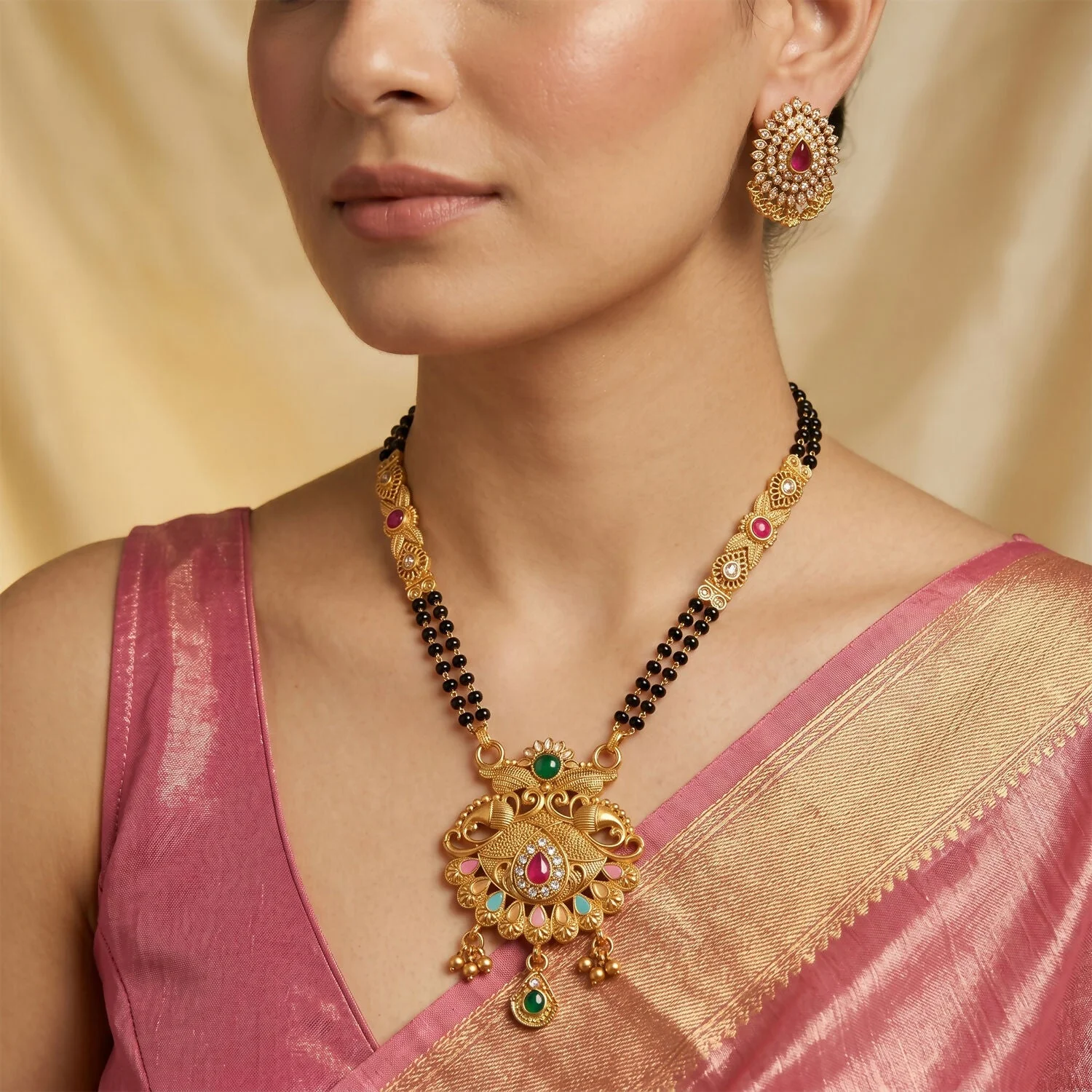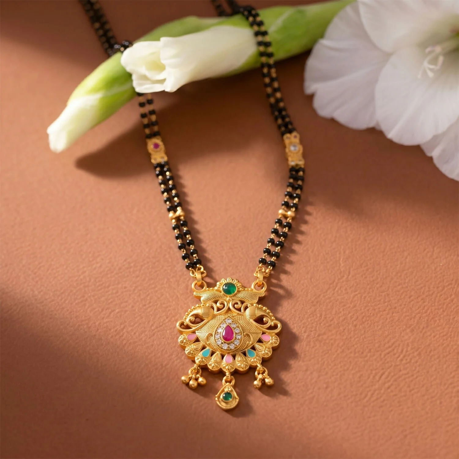 Be the first to review Mirrored Twin Peacock Pendant with Pastel Drop Long Double Strand Mangalsutra!