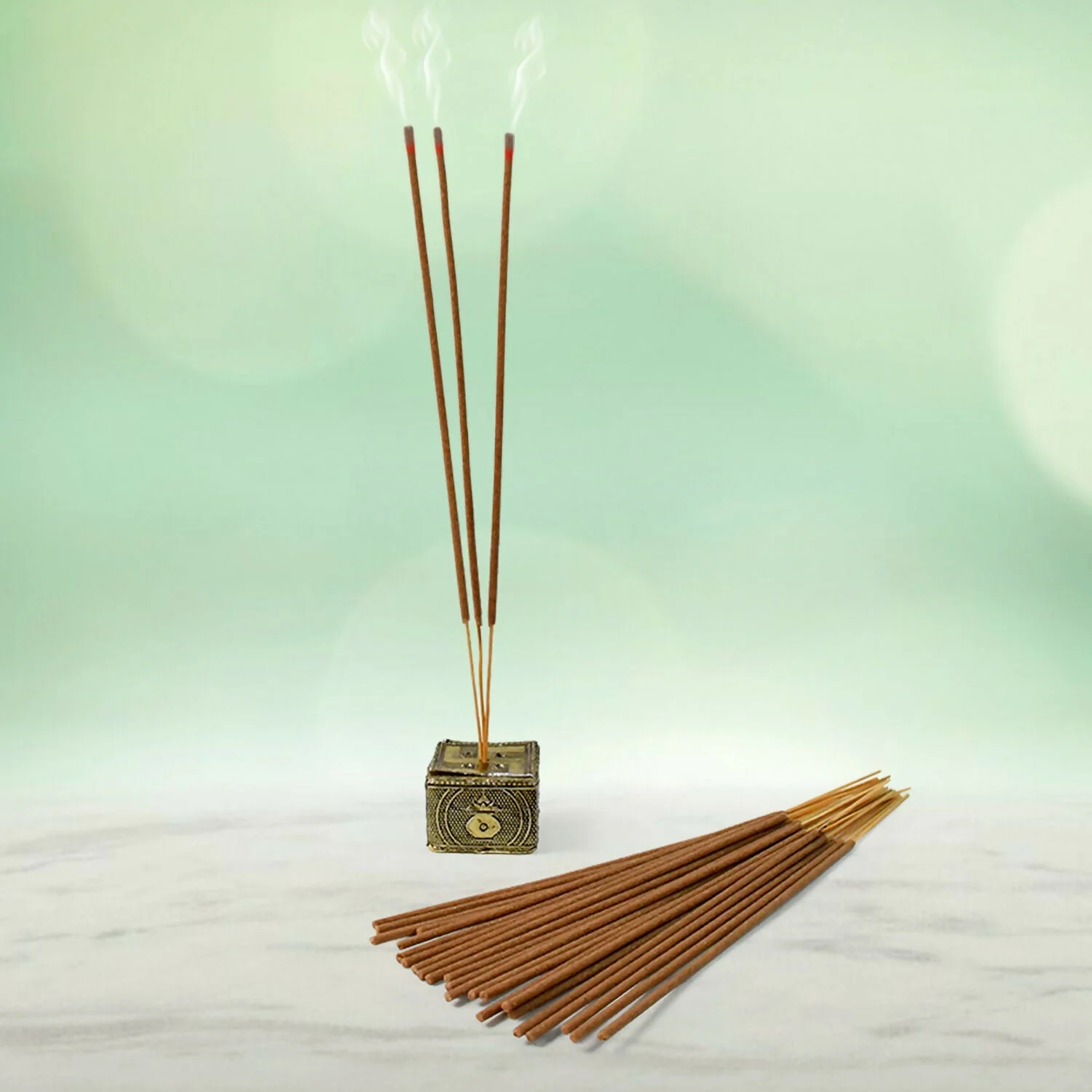 Made from natural ingredients like wood powders, aromatic herbs, resins, and essential oils, it emits a pleasant fragrance when burned.