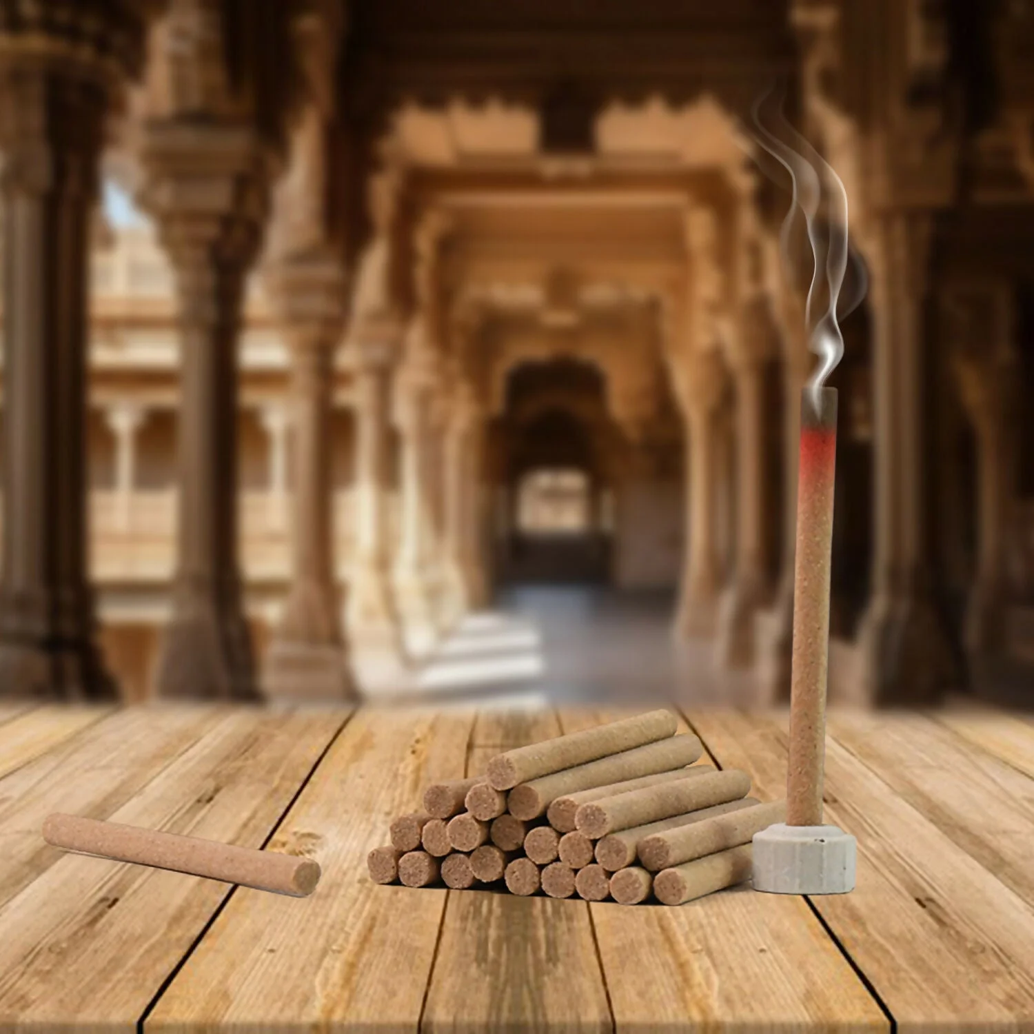 Made from natural ingredients like wood powders, aromatic herbs, resins, and essential oils, it emits a pleasant fragrance when burned.