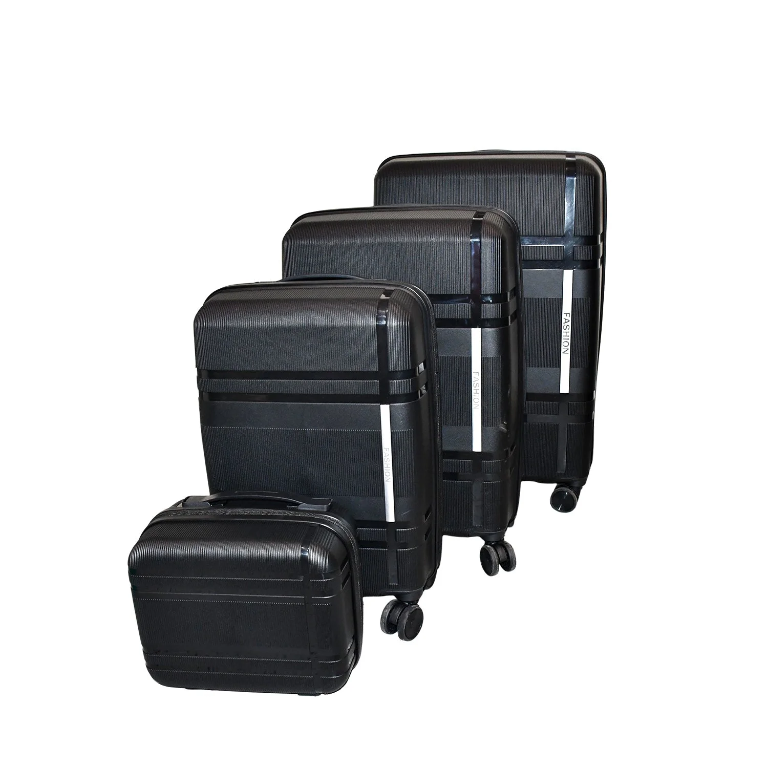 Complete 4-piece set: 3 wheeled trolleys (small, medium, large) + 1 hand-held cabin case