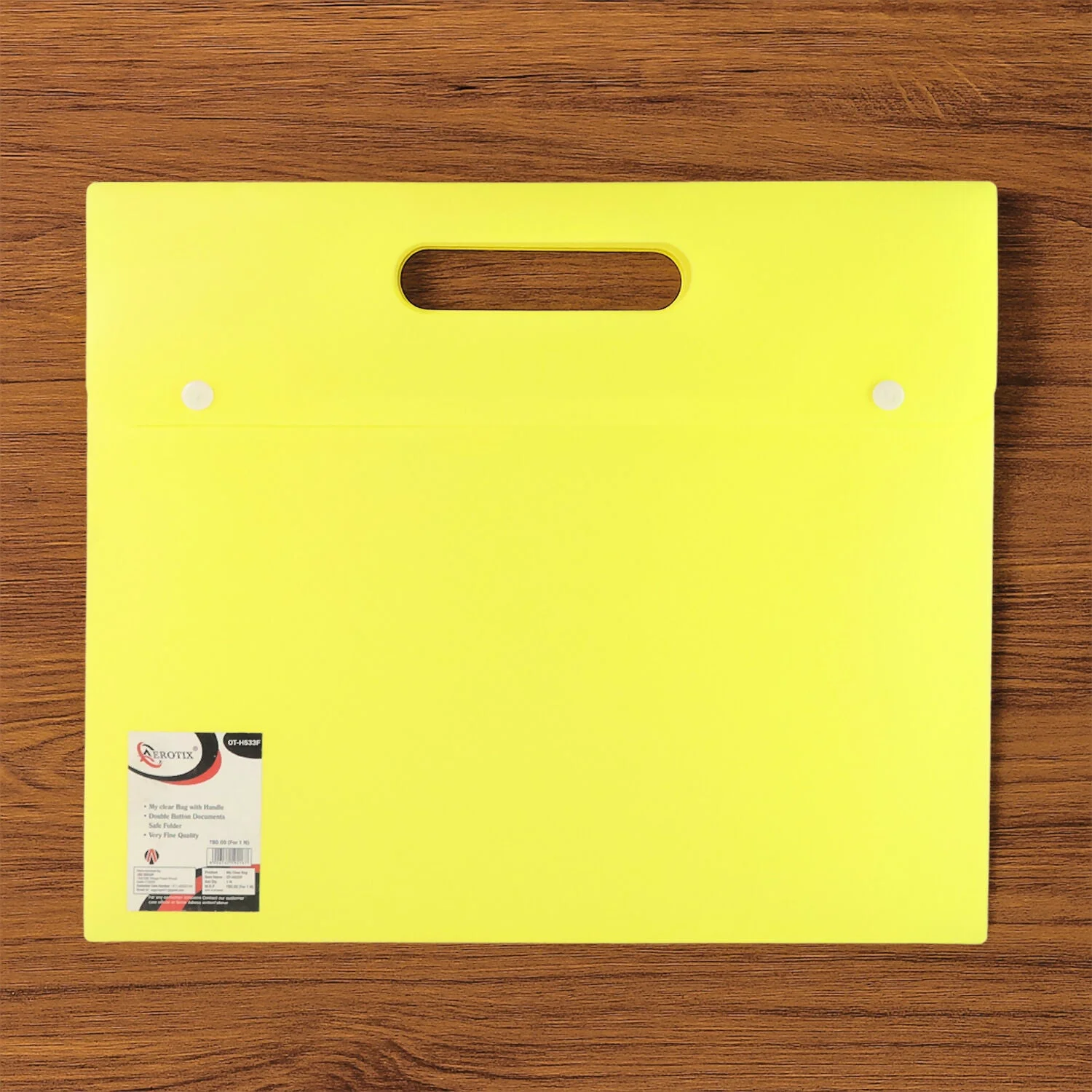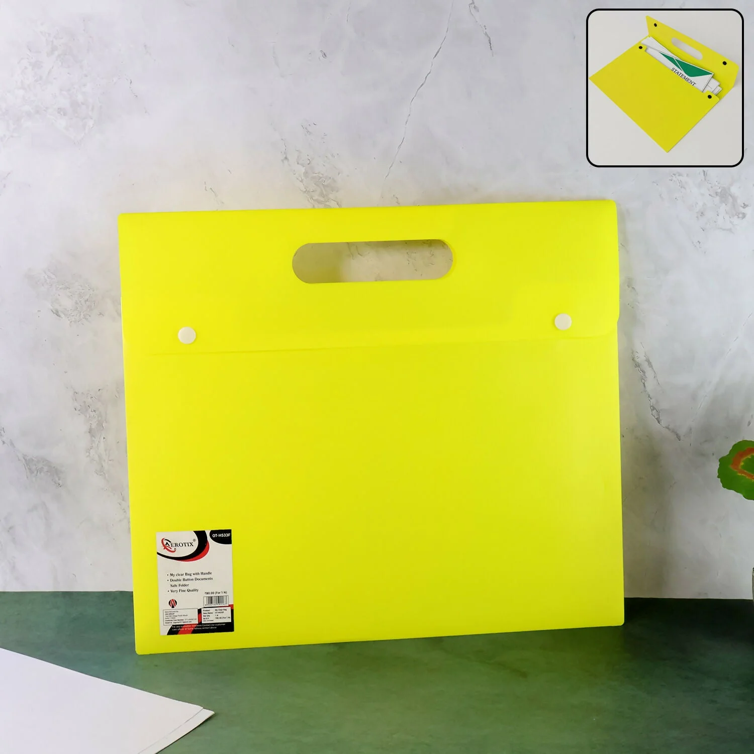 Stay organized and carry your documents with ease using this Mix Design A4 Plastic Document Folder with Handle. Featuring a sturdy built-in handle and secure button closure, this file folder is perfect for professionals, students, and anyone on the go. It keeps your papers safe from dust, spills, and creases while offering portability and style. Ideal for office files, school projects, and personal documents.
