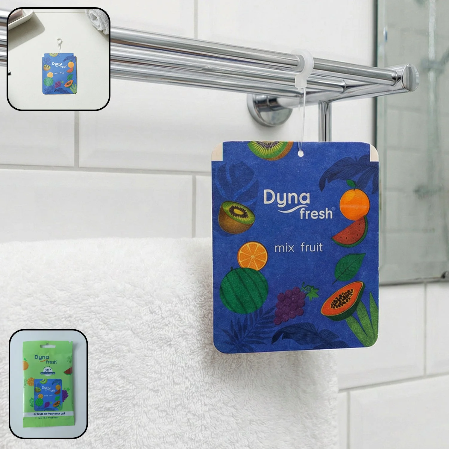 Keep your surroundings fresh and pleasant with the Mix Fruit Hanging Air Freshener Gel. Designed to deliver a refreshing fruity aroma, this compact hanging freshener helps reduce unpleasant odors and maintain a clean-smelling environment. Its lightweight paper-based design makes it easy to hang in bathrooms, wardrobes, cars, and other small enclosed spaces. The mix fruit fragrance provides a vibrant and uplifting scent that enhances the atmosphere instantly. Convenient and easy to use, this air freshener is a practical solution for everyday odor control.