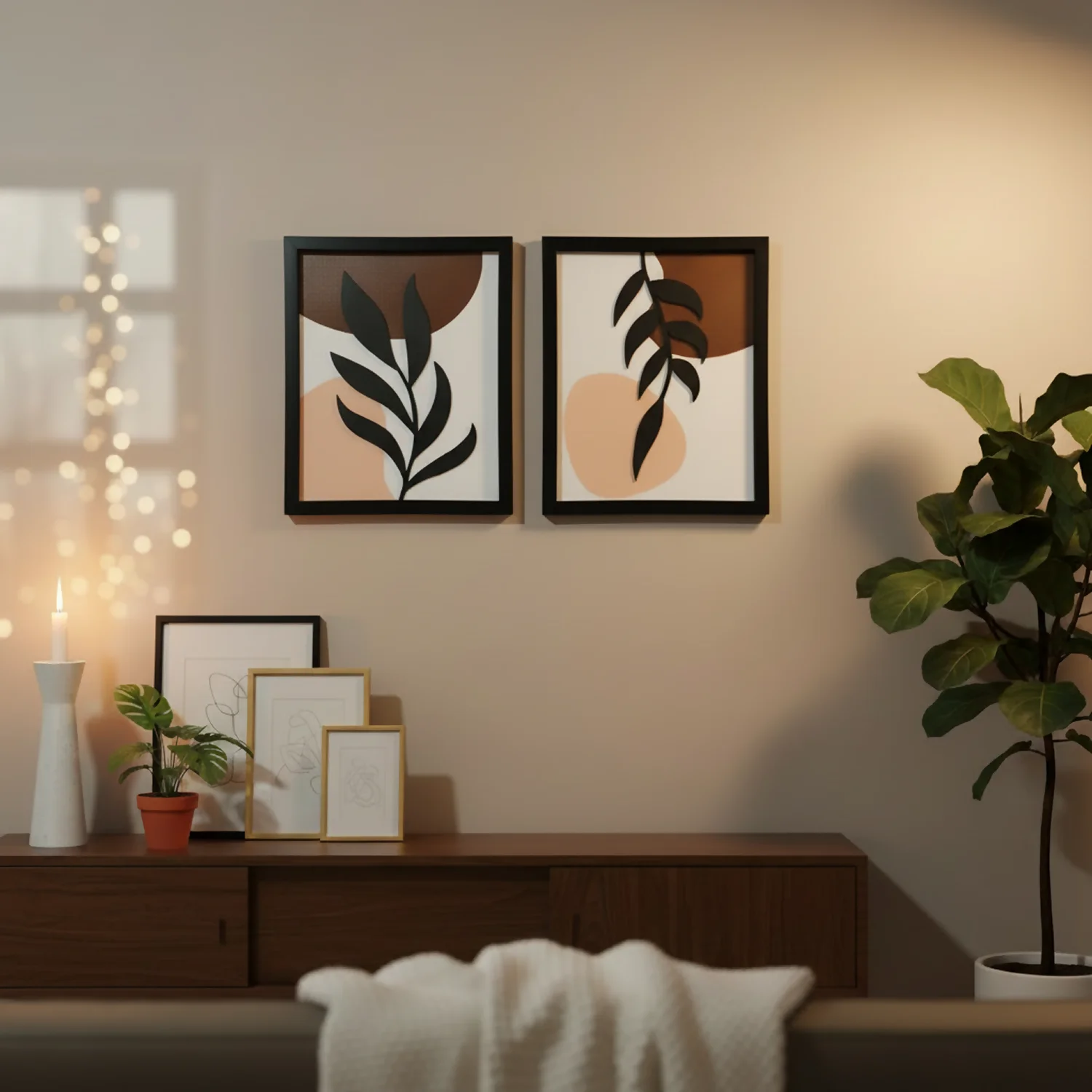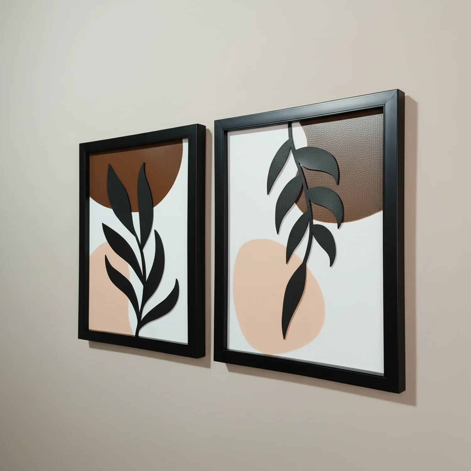 Transform your space with this Set of 2 Modern Abstract Leaf Wall Art Frames, designed to bring a perfect balance of minimalism and elegance. Featuring contemporary botanical patterns with soft neutral tones and bold leaf silhouettes, this wall art set creates a calm, aesthetic, and premium ambiance in any room.