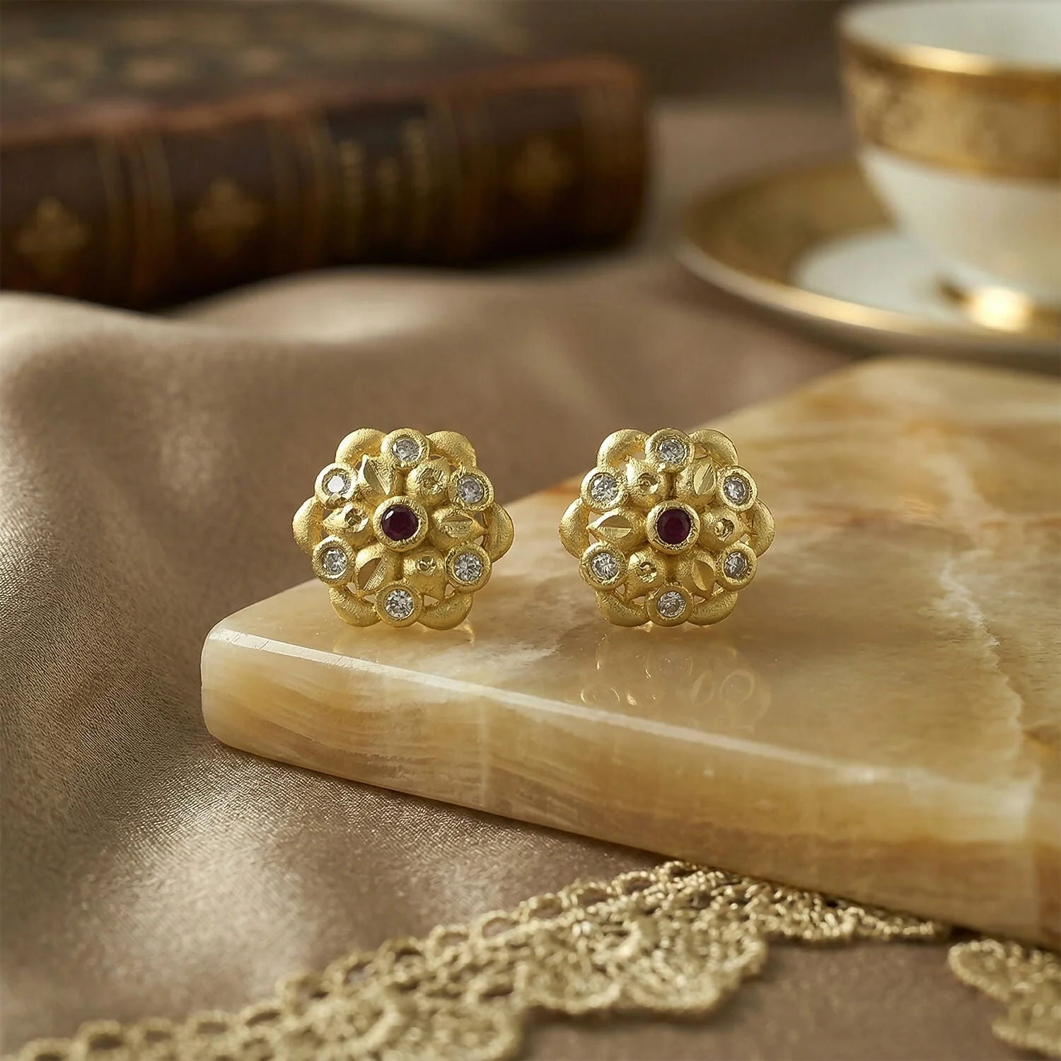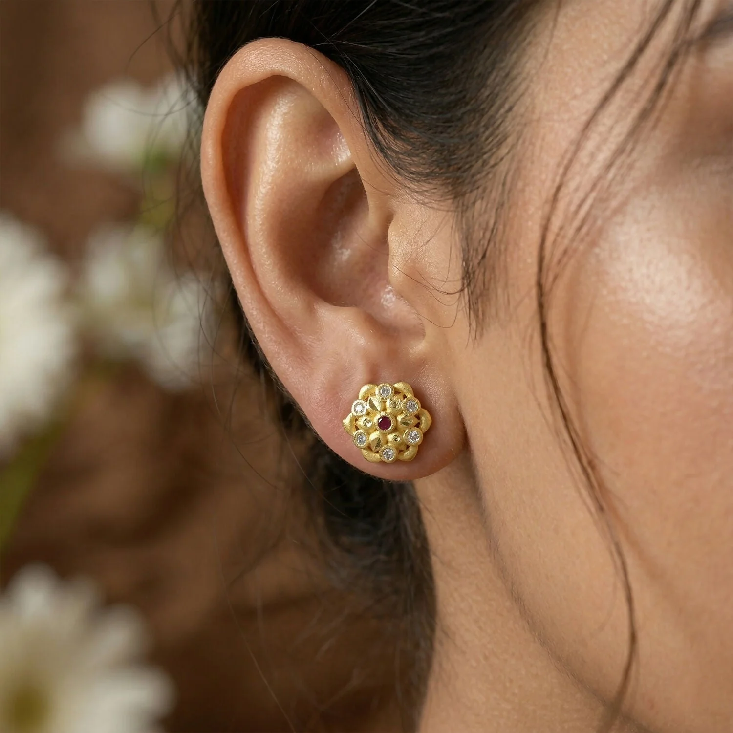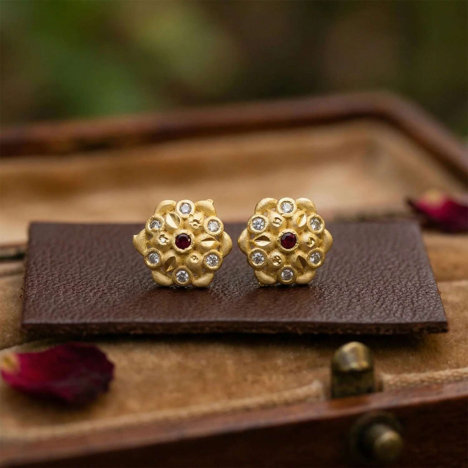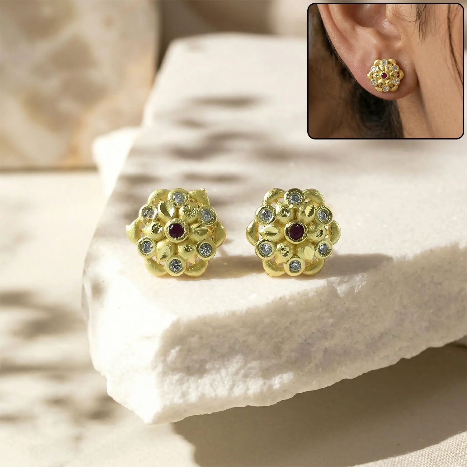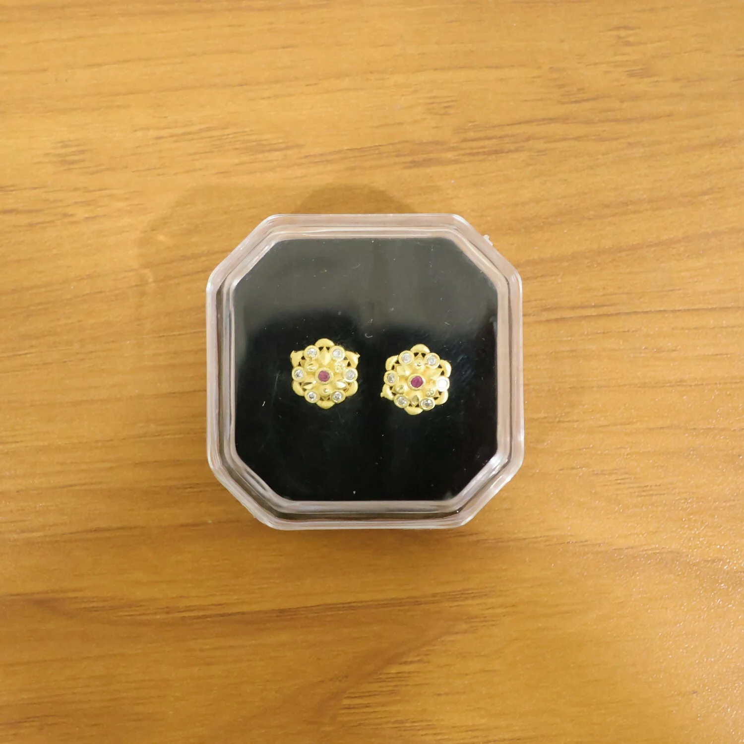 Be the first to review Modern Circular Gold Stud Earrings with Crystal Triangle Design!