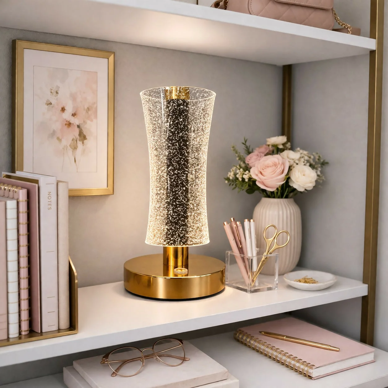 table lamp, crystal lamp, bedside lamp, decorative lamp, ambient light, bedroom lamp, living room decor, modern lamp, warm light lamp, home decor lighting
