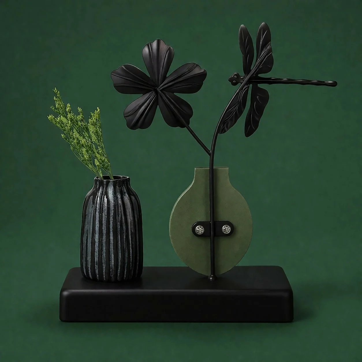 decorative showpiece, table decor item, modern home decor, flower showpiece, dragonfly decor, wooden metal decor, office desk decor, shelf decoration item, aesthetic home decor, gift showpiece