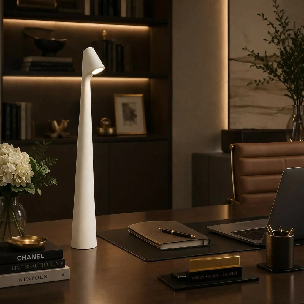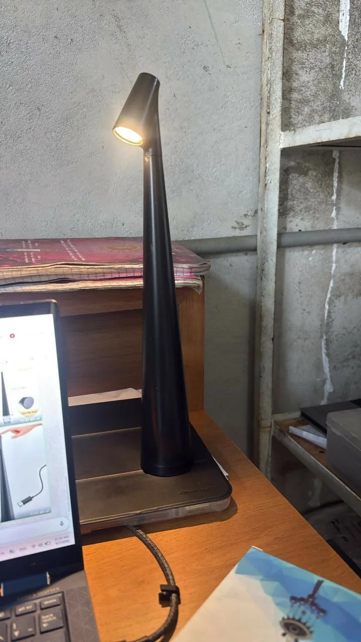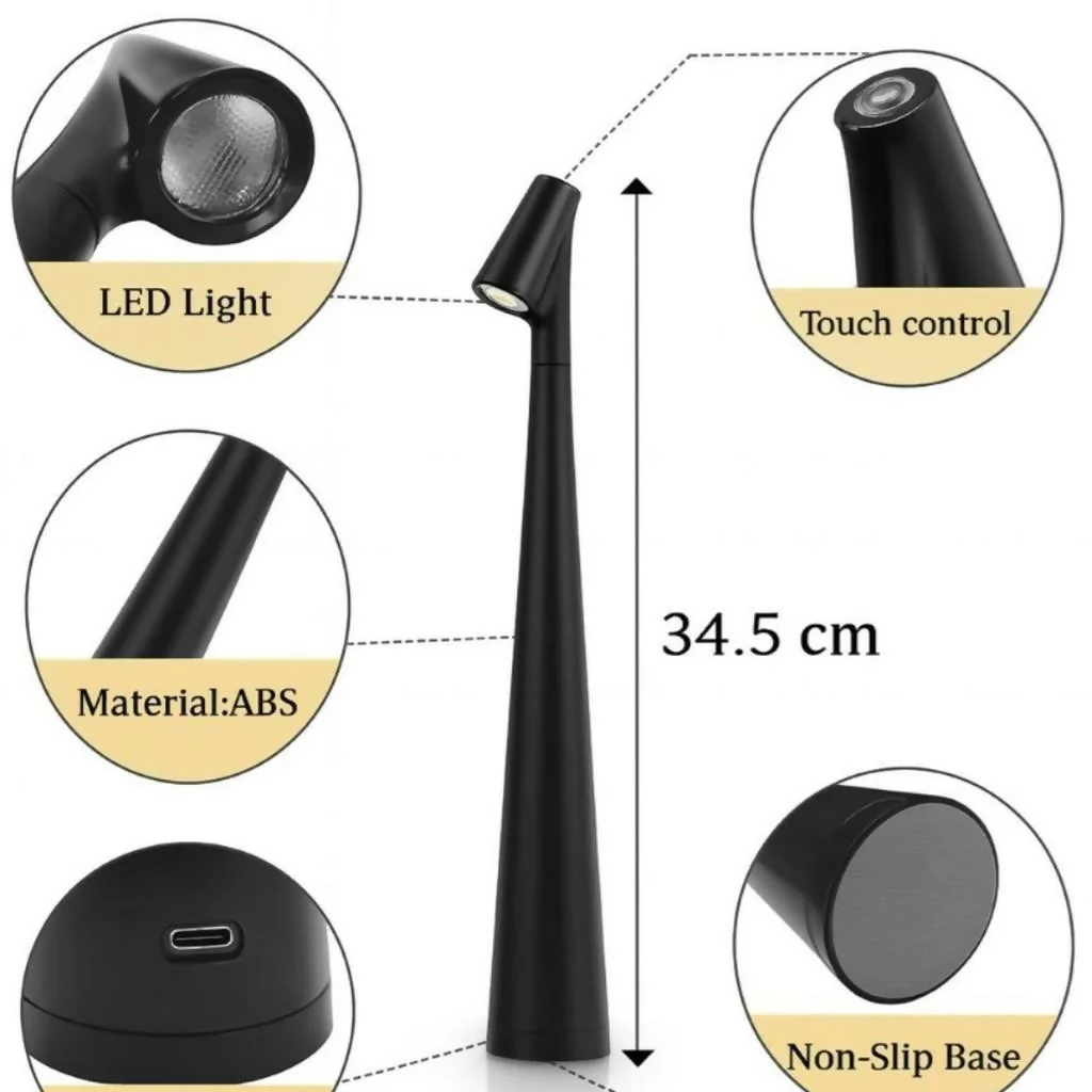 Enhance your workspace or bedside with this elegant modern LED desk lamp. Designed with a sleek and minimal structure, it delivers focused lighting ideal for reading, studying, or working. The intuitive touch control allows easy operation, while the USB rechargeable feature ensures convenience and portability. Its premium build and compact design make it a perfect addition to any home, office, or study setup.