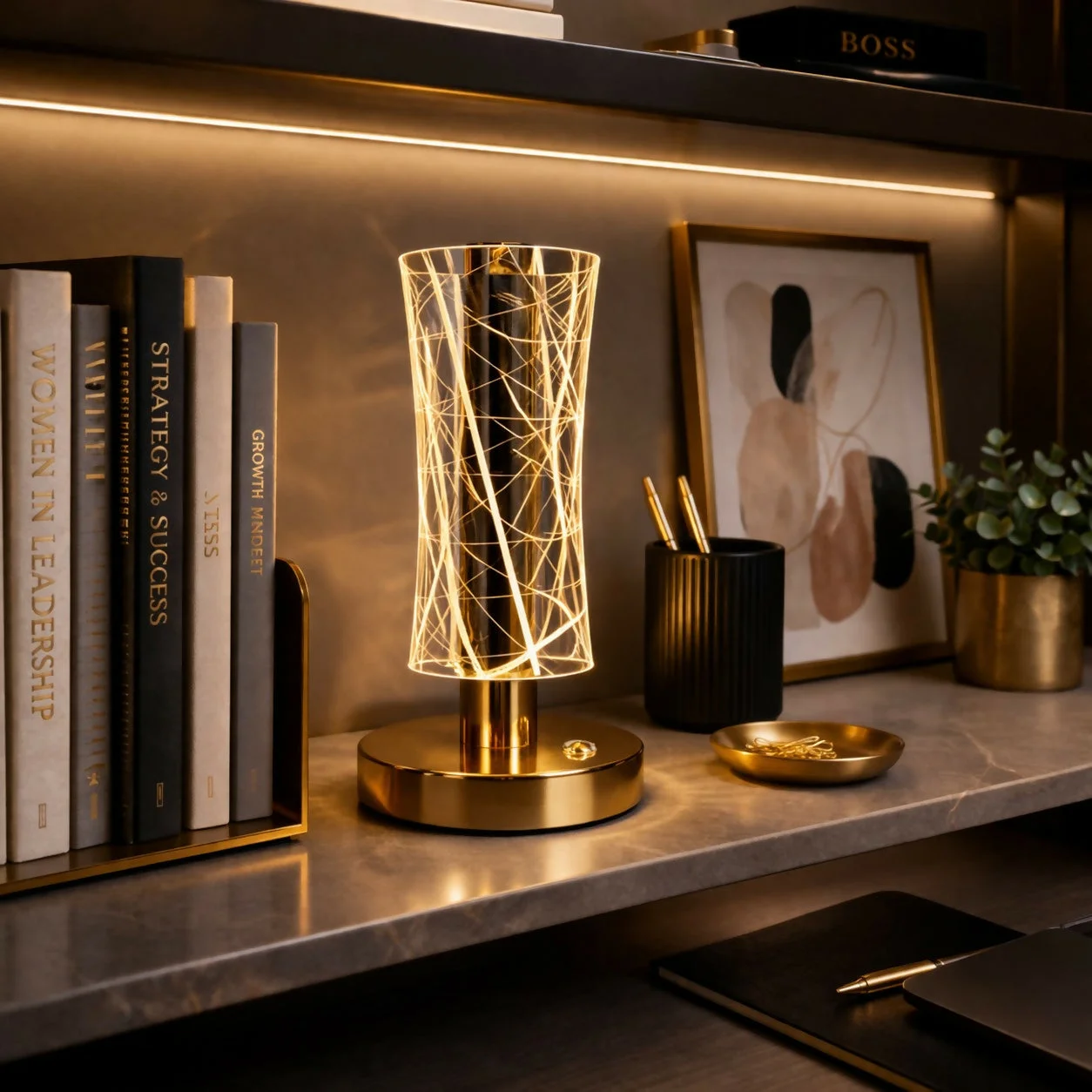 Add a touch of elegance to your space with this modern LED table lamp featuring a stylish patterned design and warm ambient glow. Perfect for bedrooms, living rooms, or bedside tables, this lamp creates a cozy and relaxing atmosphere. Its sleek base and unique lighting pattern make it both a functional light source and a beautiful decor piece for any modern interior.