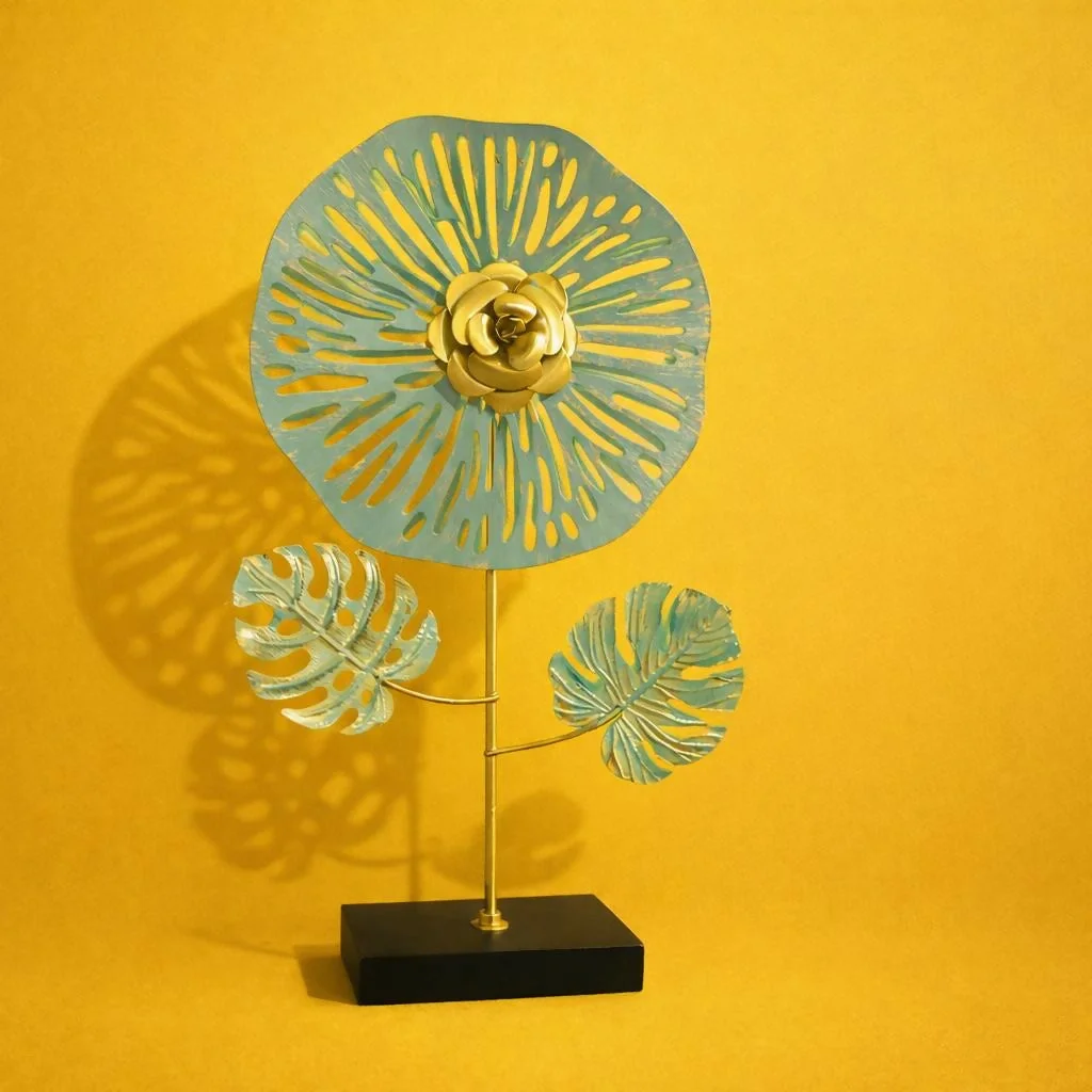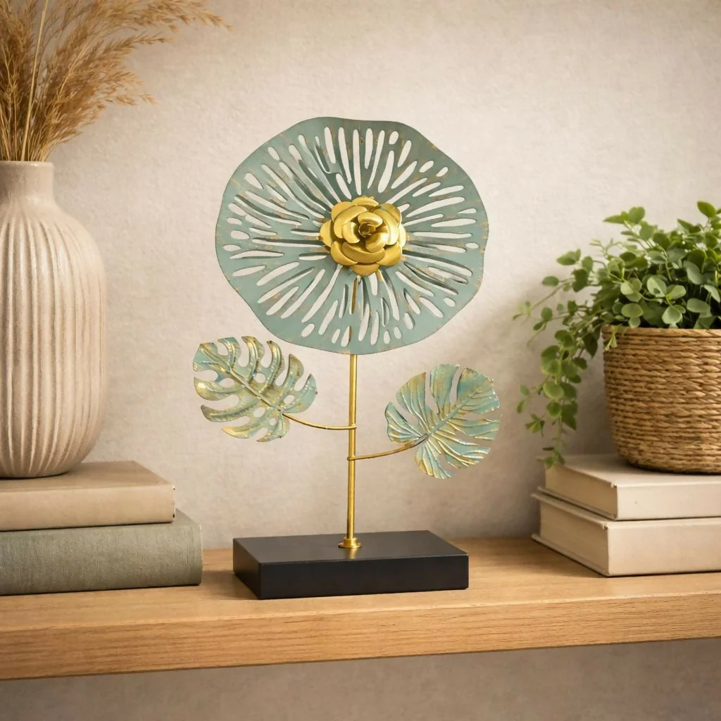 metal flower decor showpiece, modern table decor sculpture, floral metal decor statue, decorative tabletop sculpture, luxury home decor statue, metal flower art decor, living room table decor, office desk decor showpiece, decorative metal sculpture, modern home decor figurine, shelf decor statue, artistic metal decor, contemporary home decor showpiece