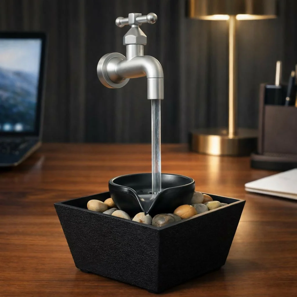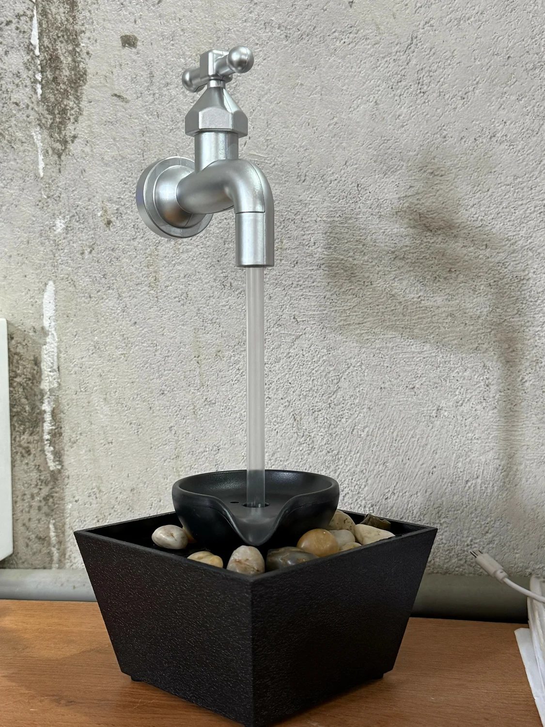 tap water fountain, tabletop fountain, indoor water feature, desk fountain decor, floating tap fountain, home decor fountain, office desk decor, meditation fountain, calming water fountain, decorative indoor fountain, small water fountain, gift for home decor