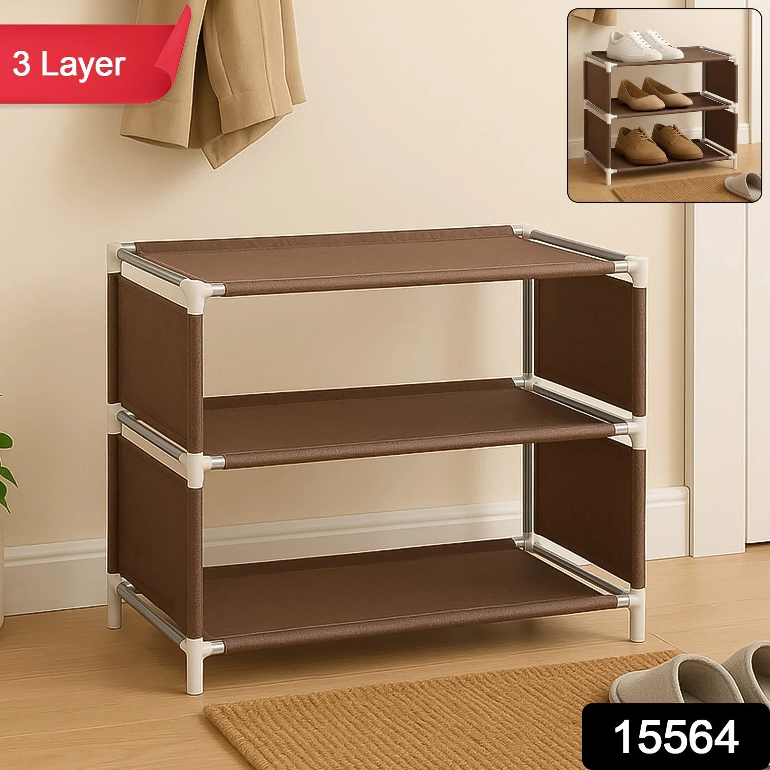 3-Layer Modular Fabric Shoe Rack Organizer – Lightweight, Foldable & Space-Saving Footwear Storage Shelf with Plastic Frame