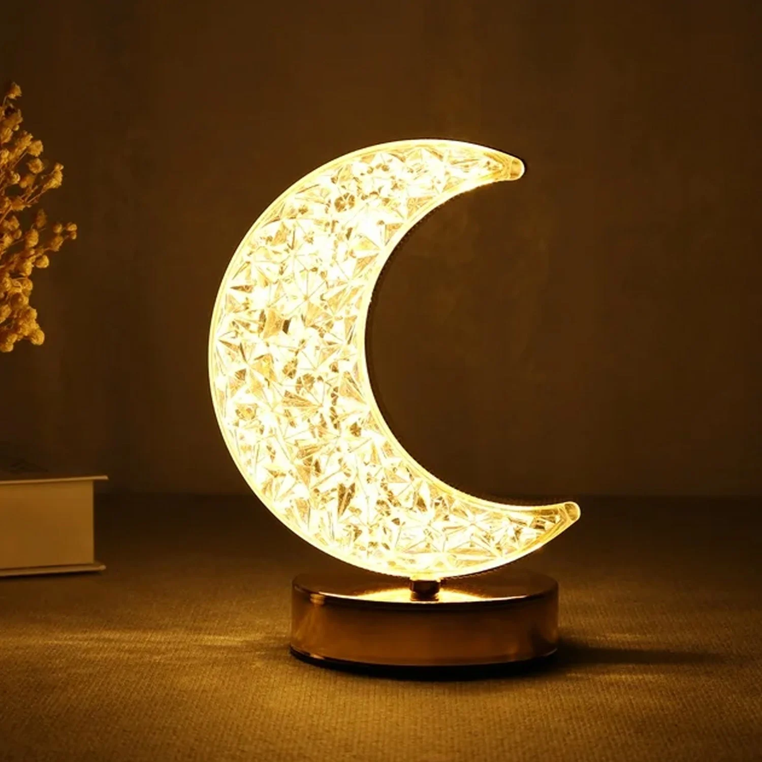 12570 Crystal Table Lamp | Moon Shape Touch Control Lamp with 3 Color | Metal Bedside Lamp for Kids Bedroom Romantic Desktop Nightstand | Stepless Dimming USB Charging Touch Night Light
