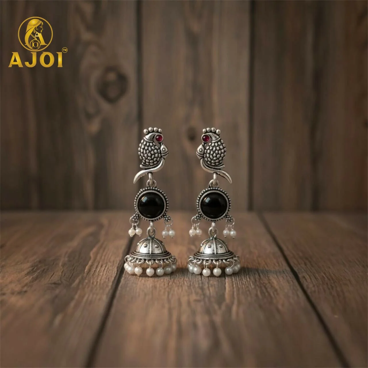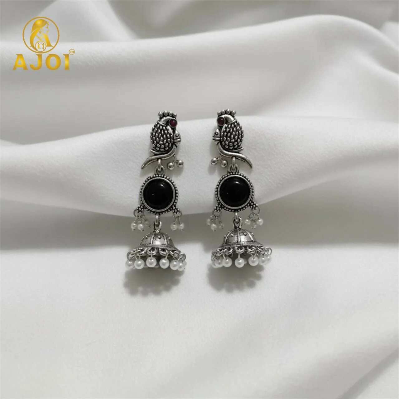 Be the first to review Moonlit Black Stone Peacock Earrings – Oxidized Silver Finish!