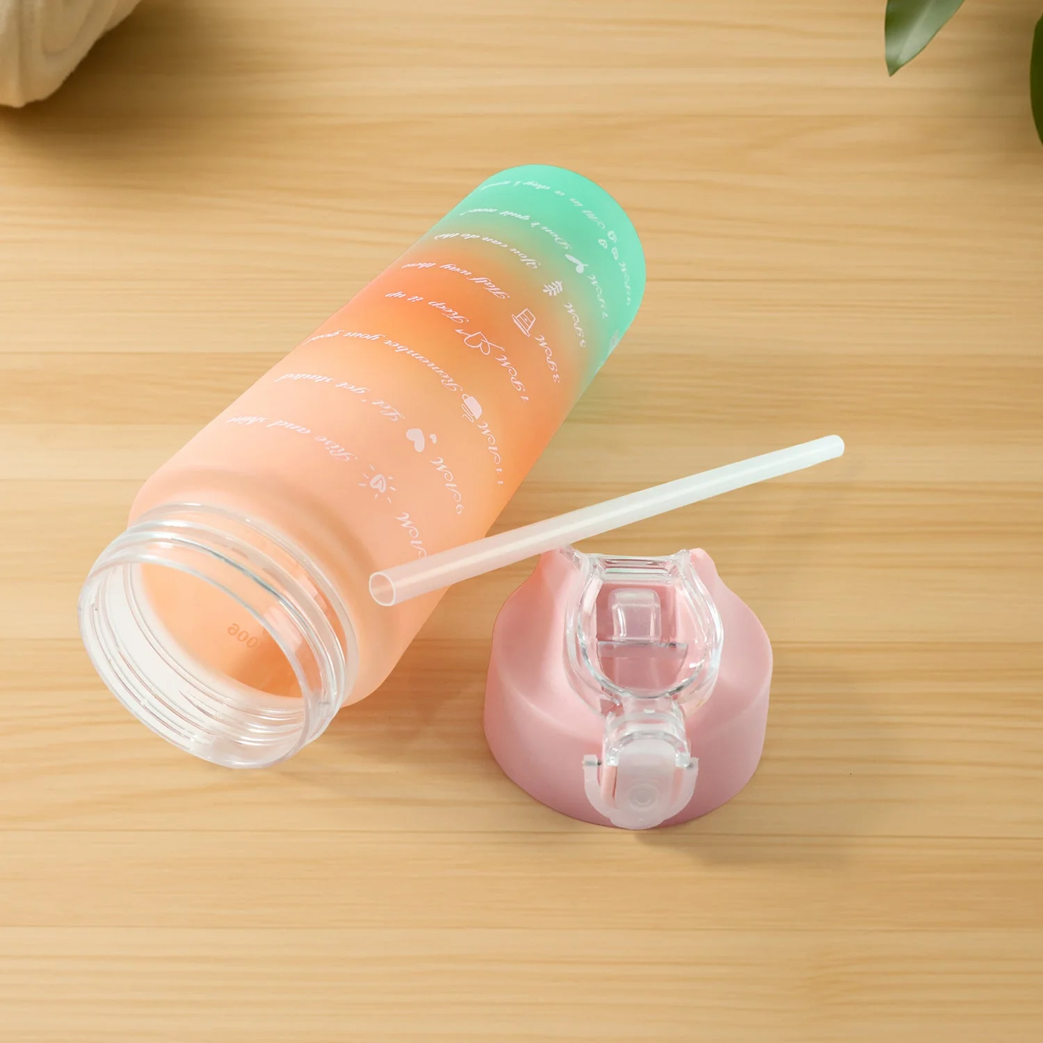 motivational gradient water bottle, flip-top water bottle, leakproof hydration bottle, cute printed water bottle, daily hydration bottle, school water bottle, office water bottle, home hydration bottle, travel water bottle, reusable motivational bottle, portable water bottle, inspirational design water bottle, spill-proof flip lid bottle, stylish gradient water bottle