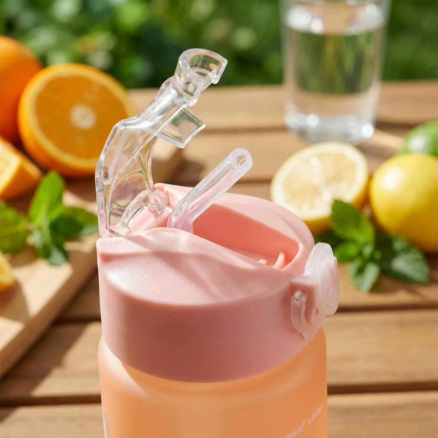 Stay hydrated in a fun and motivating way with this beautifully designed gradient water bottle featuring inspirational time-based reminders and cute illustrations. Designed to encourage regular water intake throughout the day, this bottle is ideal for building healthy hydration habits for both kids and adults. The secure flip-top lid helps prevent spills, while the slim, easy-to-carry design makes it perfect for daily use. Whether placed on a study table, school desk, or office workstation, this bottle adds a cheerful and functional touch to everyday routines.