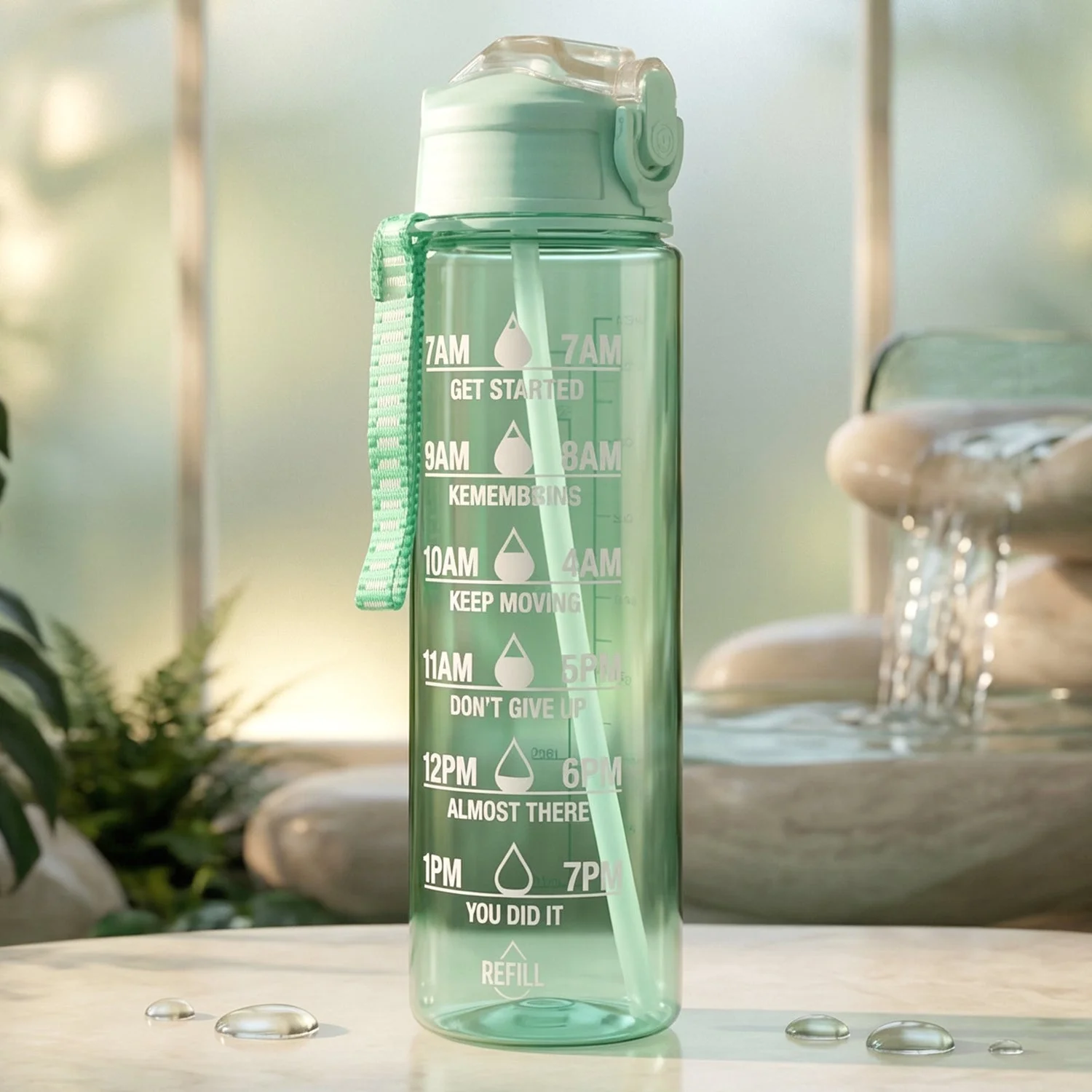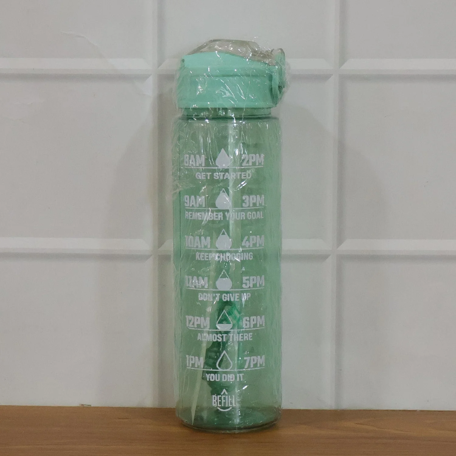 Stay hydrated throughout the day with this 900 ML motivational water bottle designed with clear time markers to help you track your daily water intake. The bottle features an easy flip top lid with secure lock mechanism for convenient one-hand operation. Built with a sturdy body and leakproof design, it is suitable for daily use at home, office, gym or outdoor activities. The integrated straw allows smooth sipping, while the carry strap makes it easy to take anywhere. Its practical and stylish design encourages consistent hydration and supports an active lifestyle.