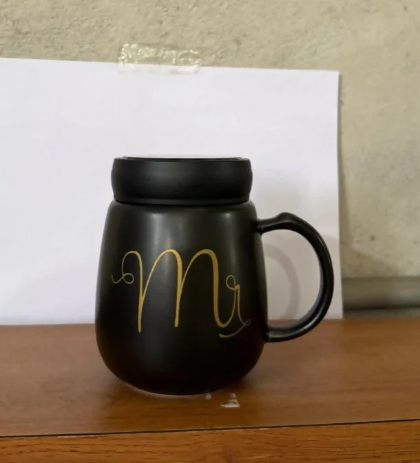 mr mug, ceramic coffee mug, printed mug with lid, stylish tea cup, matte finish mug, coffee cup with lid, gift mug for men, couple mug, modern mug, office mug, tea coffee mug, designer mug, kitchen mug, black mug