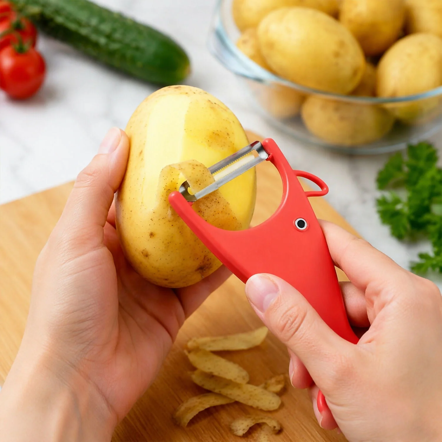 Each peeler features a sharp serrated blade that effortlessly removes skin from potatoes, carrots, apples, and more with minimal effort. The ergonomic design provides a comfortable grip, allowing smooth and precise peeling without strain.