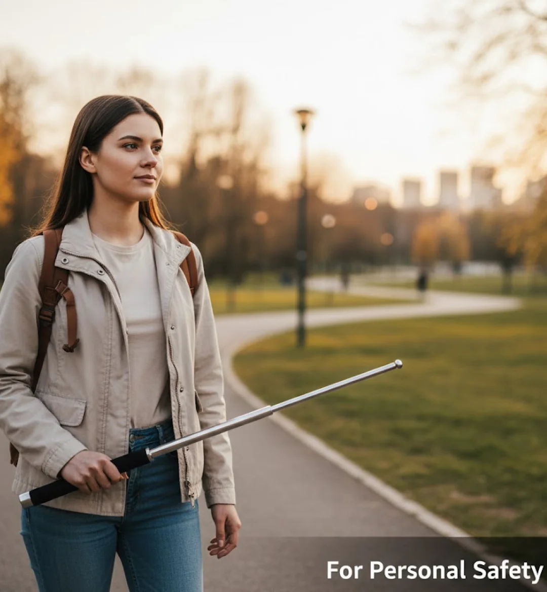 Foldable safety rod. Opens when you jerk your hand. Useful item for everyone, either in home , . Best for ladies or girls for their safety. Just jerk your hand, it will open automatically. Can also be used for self-protection. Fits in one's pocket. Hand-strap makes more comfortable to grip.