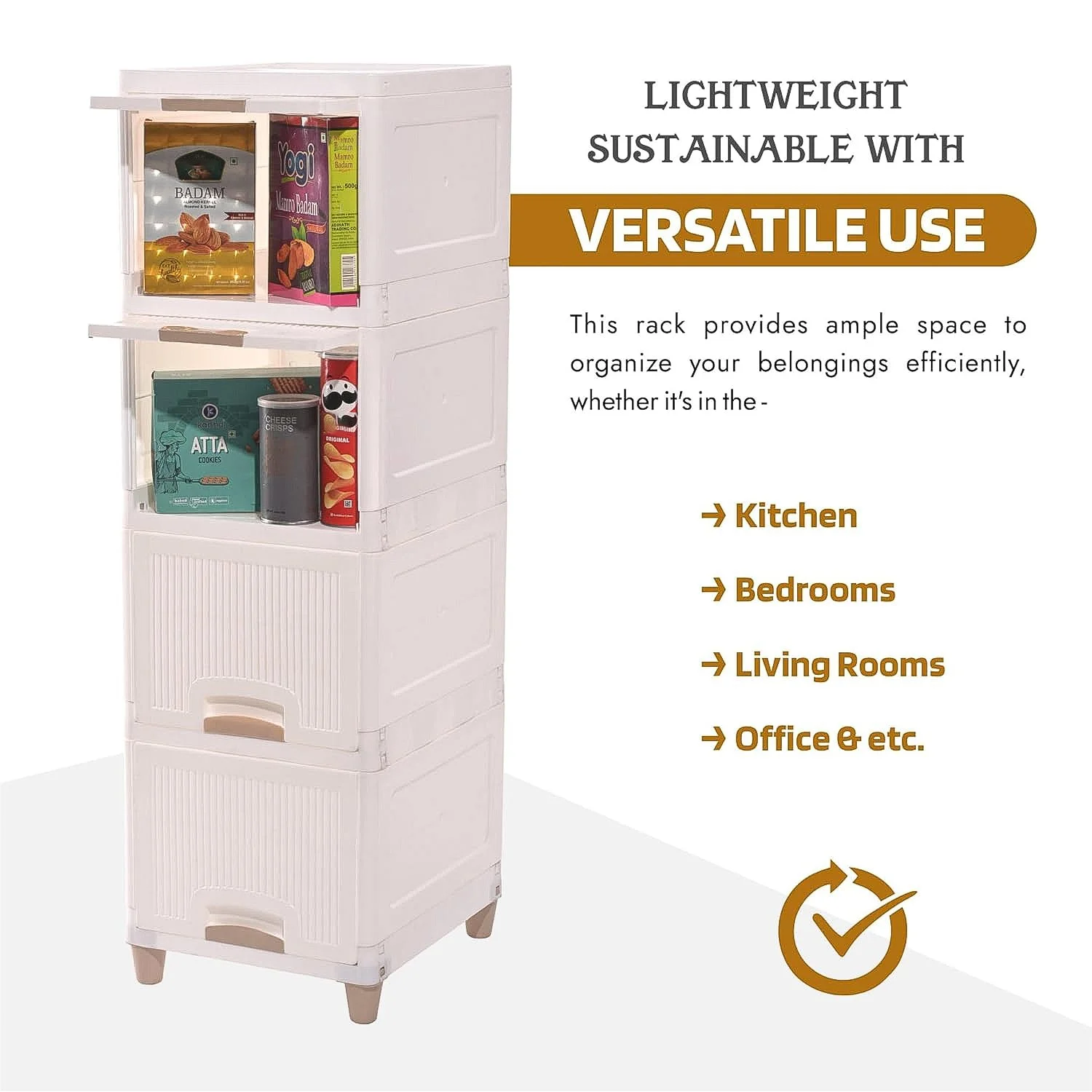 Organize your space effortlessly with this 5-layer plastic storage drawer cabinet, a practical solution for clutter-free living. Made from high-quality, durable plastic, this modular unit offers five spacious drawers that glide smoothly for quick access. Its vertical, space-saving design fits perfectly into corners of bedrooms, living rooms, kids' rooms, or office spaces. The minimalist white color and ribbed panel texture blend easily with any decor. With its sturdy base and optional wheels, you can conveniently move it around to suit your needs. Packed in a secure brown box, this unit is easy to assemble and offers long-term utility for both home and professional environments.