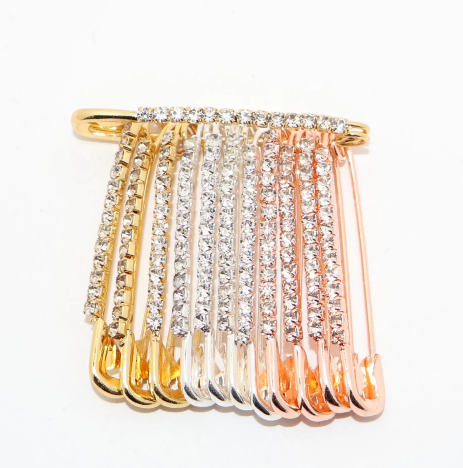 Mixed Metal (Clear Crystal): Features Gold-Tone, Silver-Tone, and Rose Gold-Tone pins all set with clear, shimmering crystals (as shown in image 2).