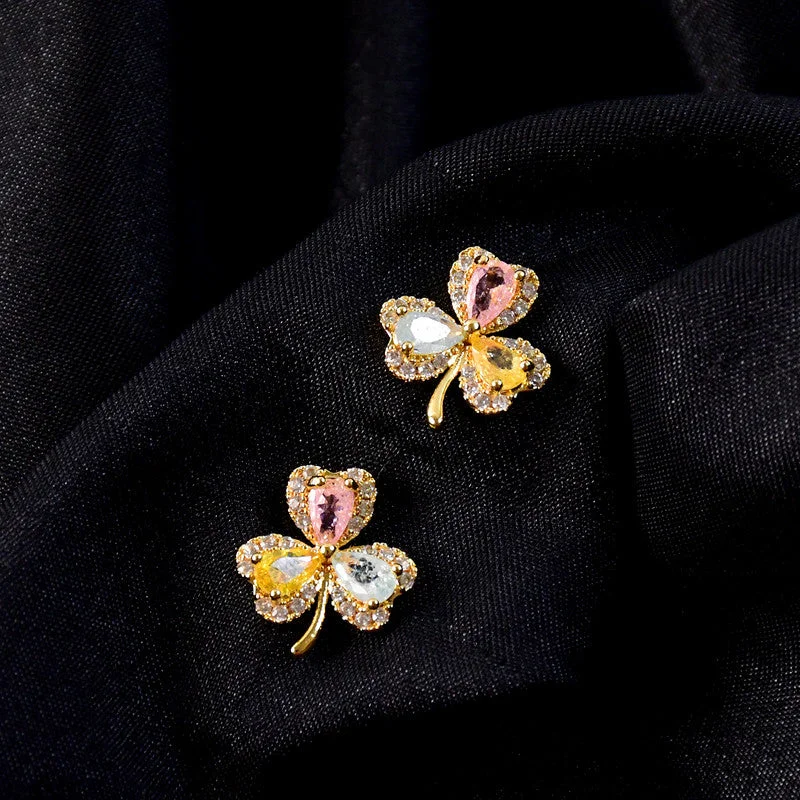 Be the first to review Multicolor Crystal Clover Stud Earrings with Gold Finish for Women!