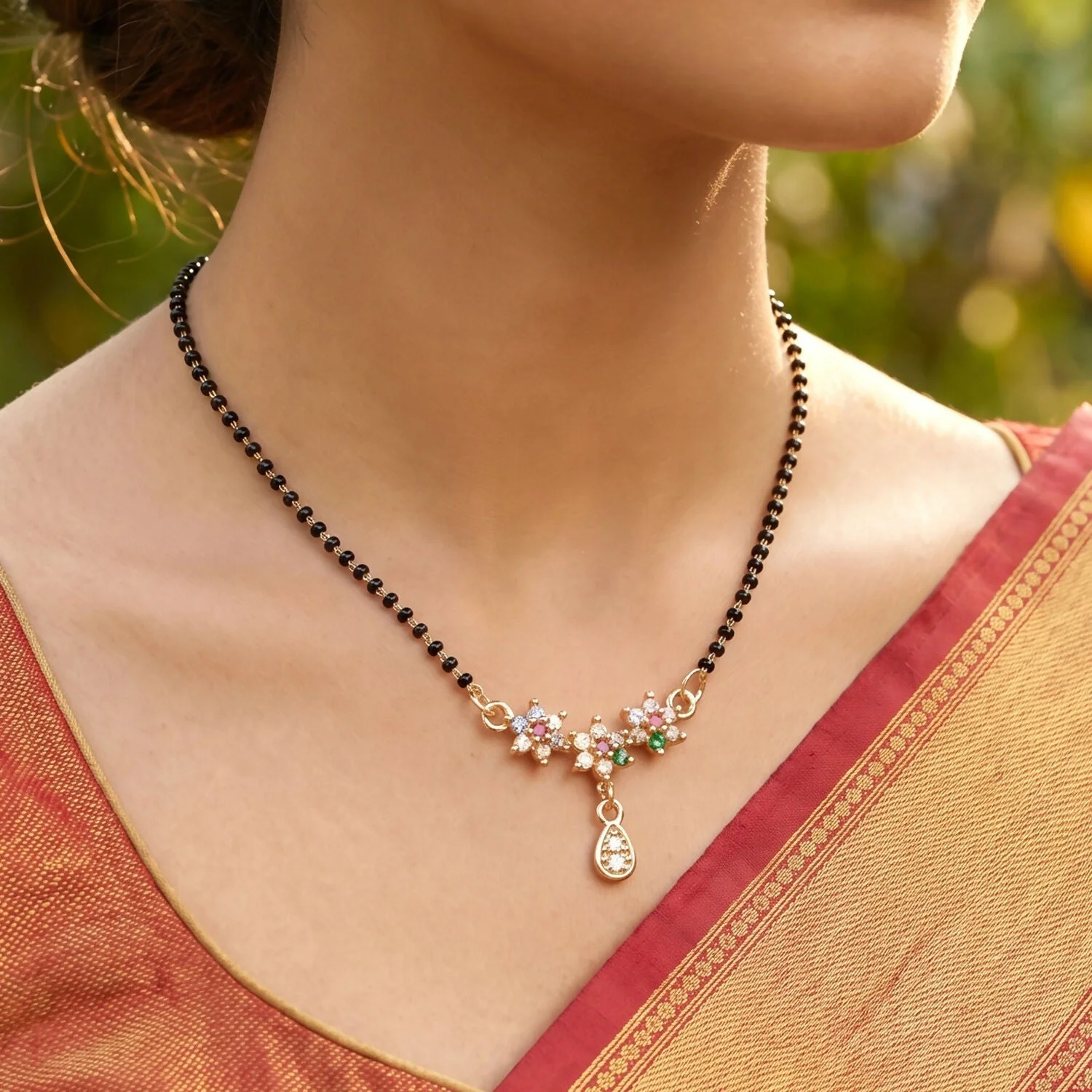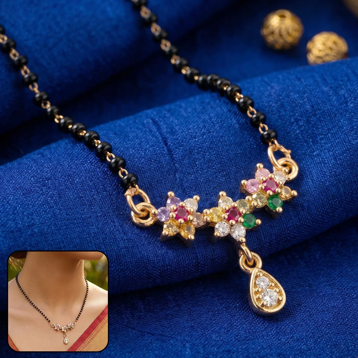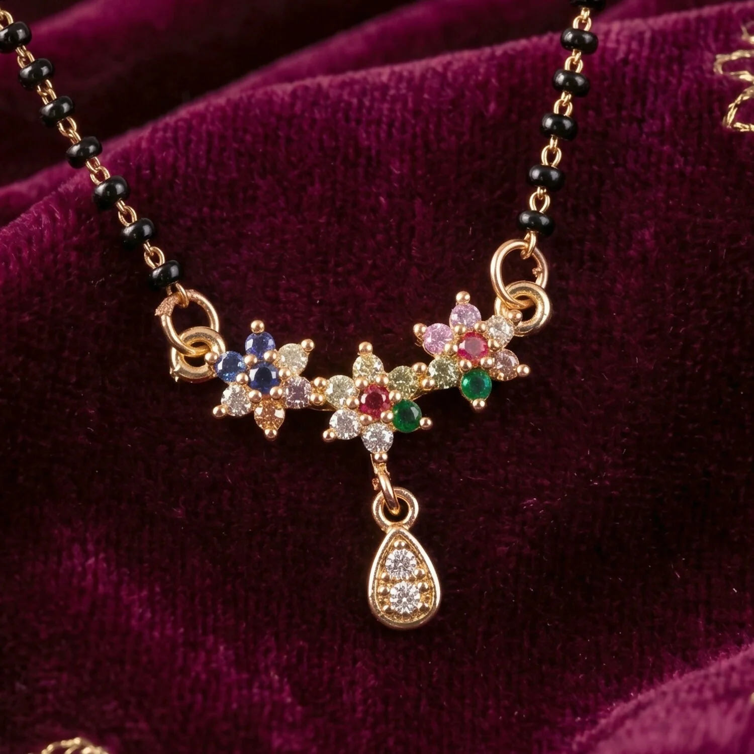 Be the first to review Multicolor Floral Stone Mangalsutra with Hanging Drop Pendant!