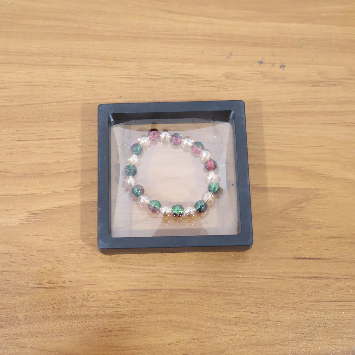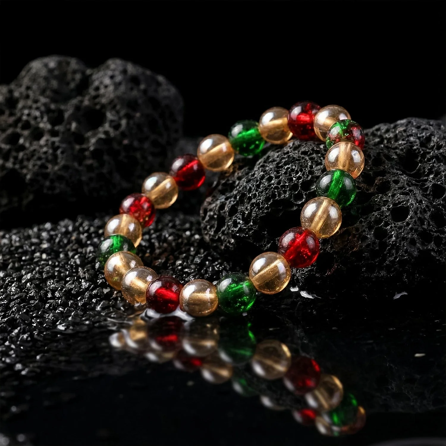 Premium Multicolor Glossy Bead Stretch Bracelet for Women & Girls – Stylish Elastic Hand Bracelet Made with High-Shine Transparent, Red & Green Decorative Beads for Daily Wear, Festive Outfits, Gifting & Fashion Styling (1 Pc)