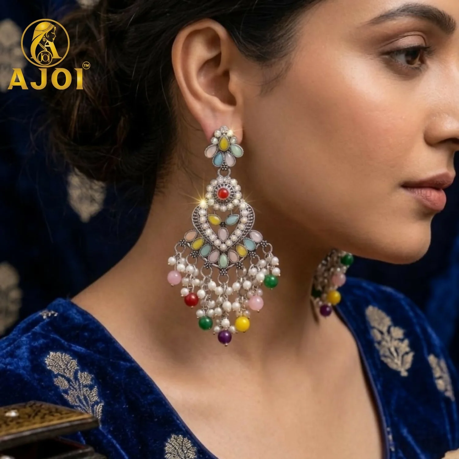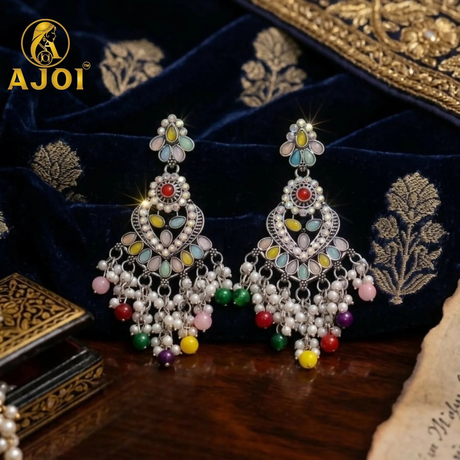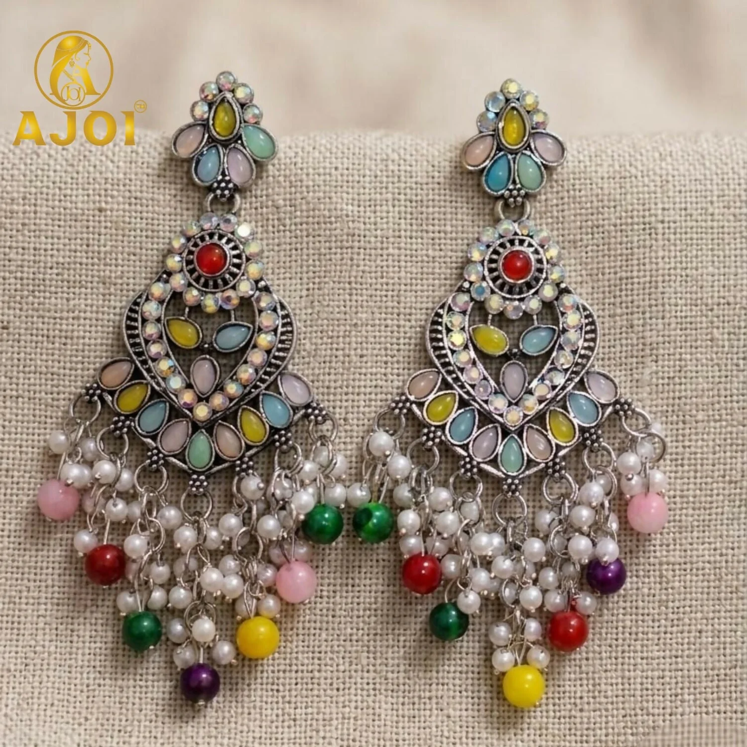 Be the first to review Multicolor Oxidized Statement Earrings with Beads & Pearl Tassels!