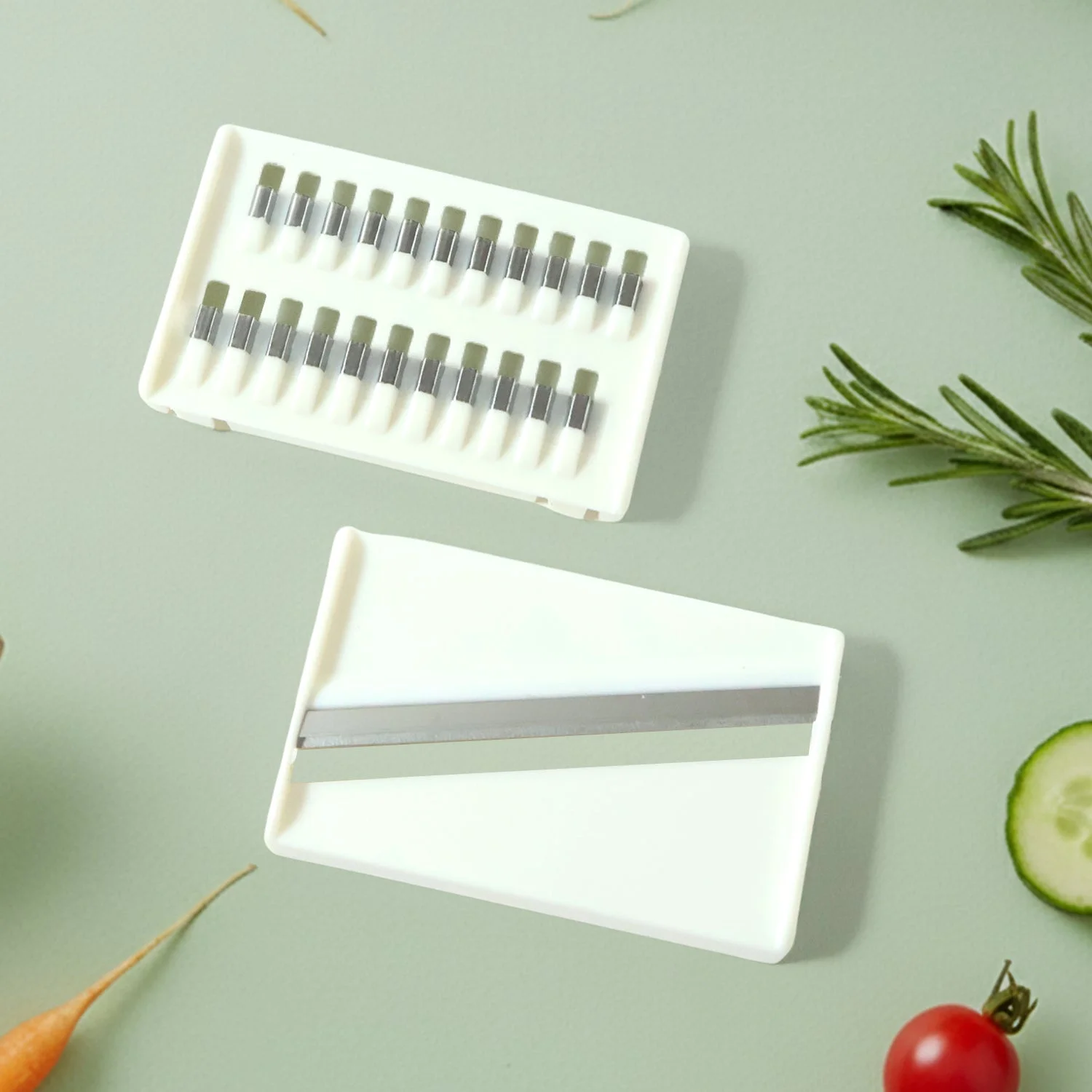 The cutter features a sturdy body that offers a comfortable grip and controlled cutting experience. The detachable blade inserts allow quick switching between different cutting styles, making it a versatile addition to any kitchen setup. Its compact structure helps save storage space while still offering multiple cutting options in one set.