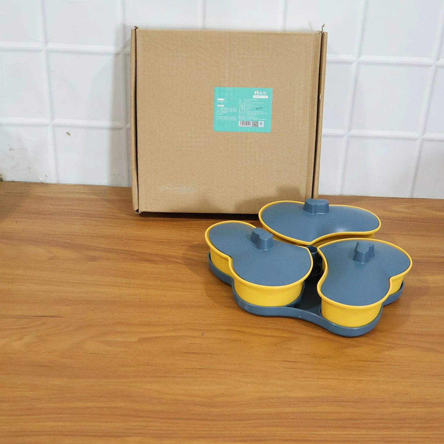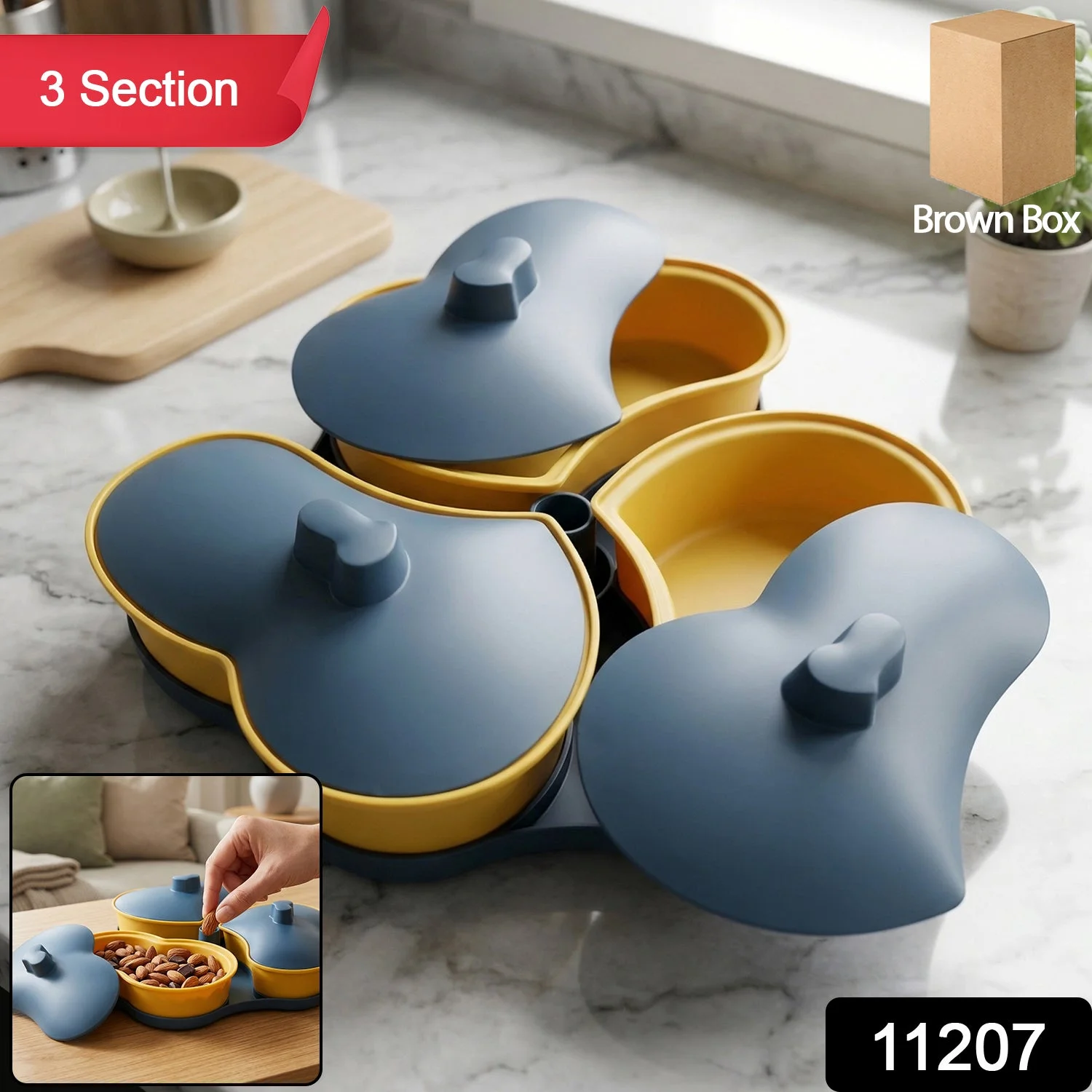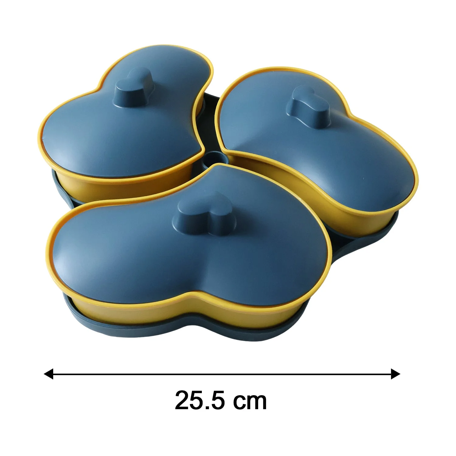 Multipurpose 3 Section Snack Serving Tray with Lid Dry Fruit Storage Container Kitchen Organizer Serving Bowl Set for Nuts Snacks Candy Storage & Serving 1 Pc