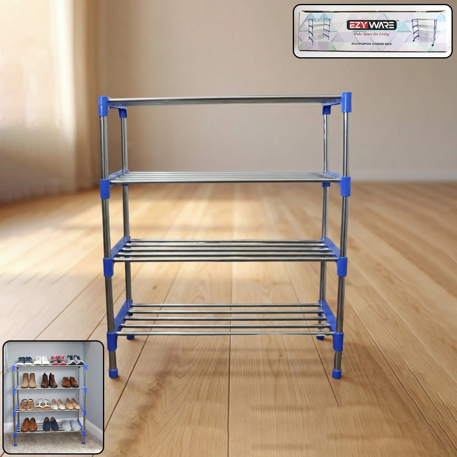 4-layer shoe rack, multipurpose shoe organizer, space-saving shoe rack, stainless steel storage rack, shoe rack with plastic connectors, multi-functional storage rack, shoe and clothes organizer, home storage rack, closet shoe organizer, bedroom storage solution,durable shoe rack, shoe storage shelf, shoes and accessories organizer