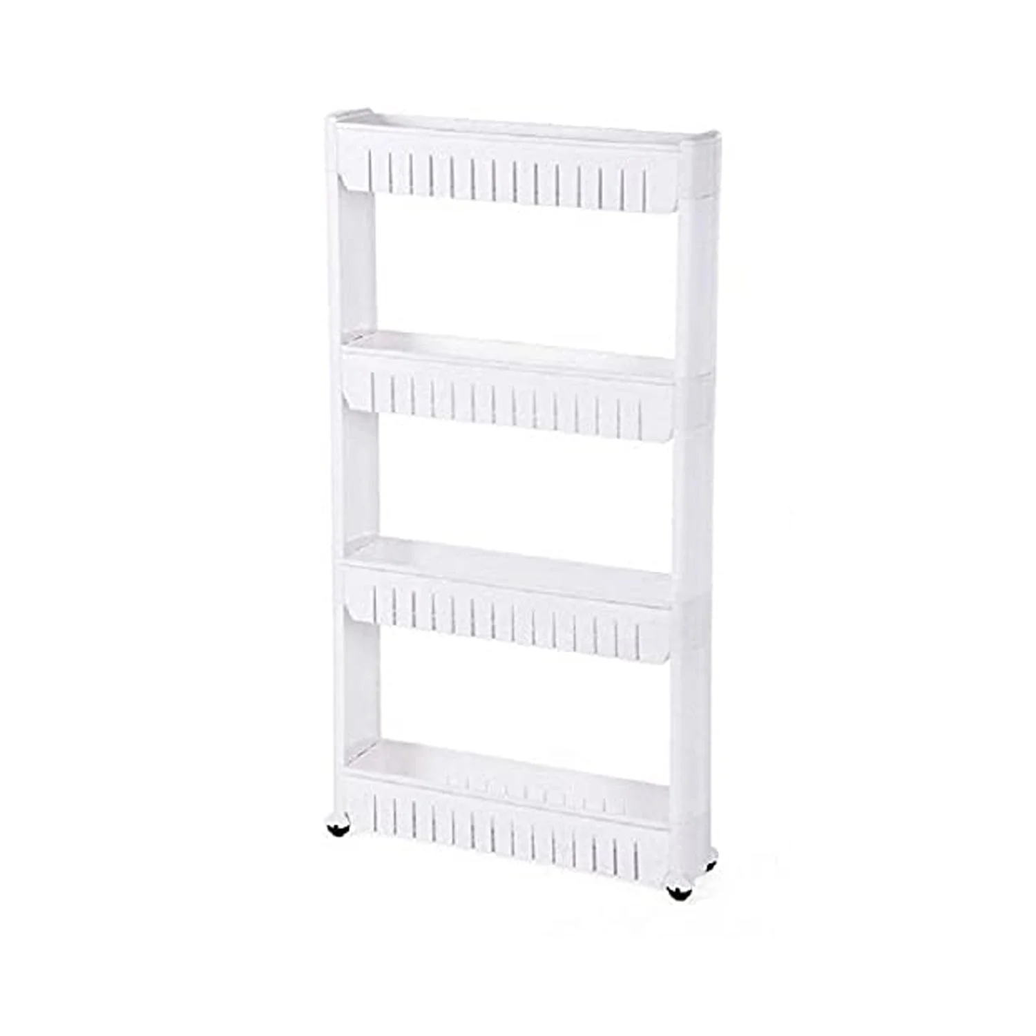 Space Saving Storage Organizer Rack - 4 Tier Slim Multipurpose Storage Rack with Wheels (Multicolor) (MOQ :- 3 Pc)