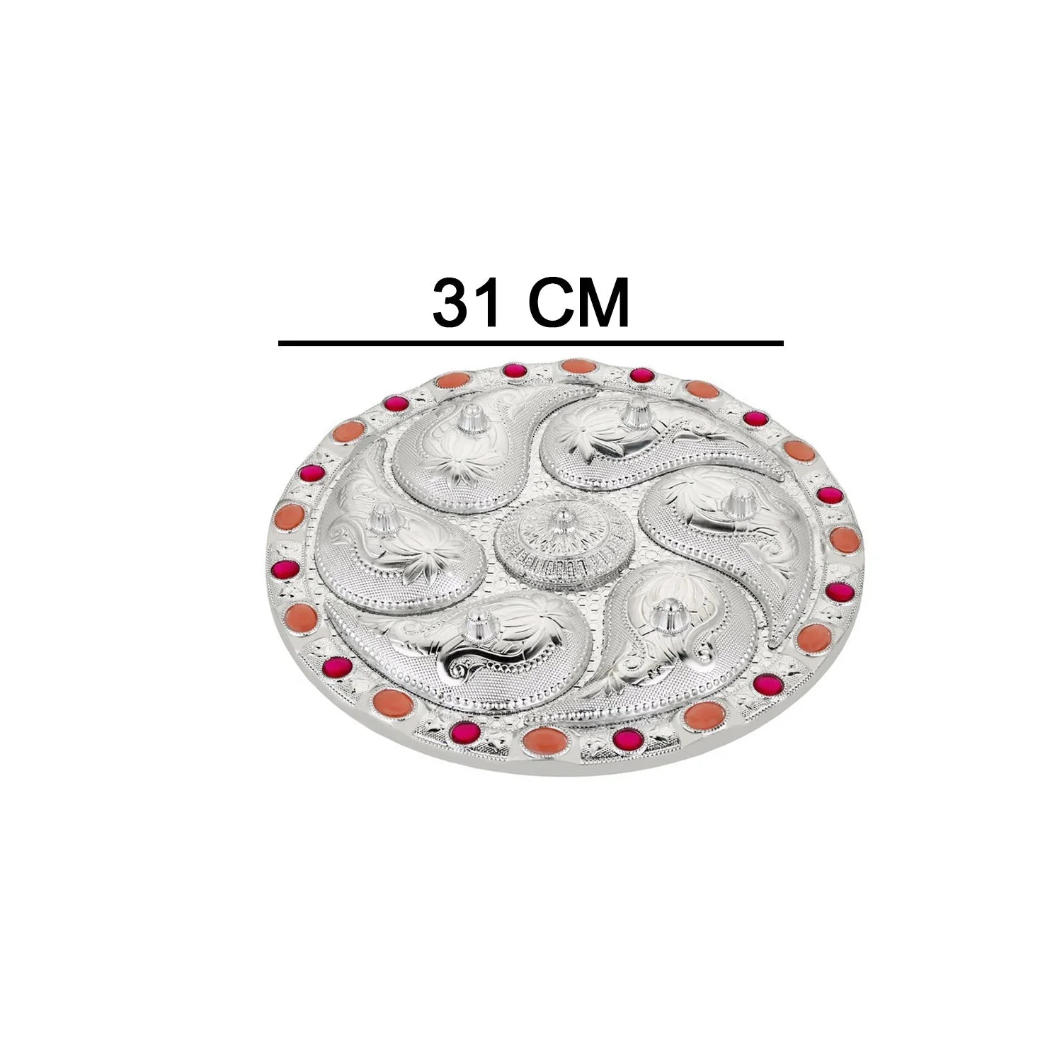 Traditional look serve ware dry fruits box for modern homes. It's stylish outlook and compartment make it beautiful This tray set is designed in a special way to enhance your dining table. The body of the tray set is well designed. The tray gives a amazing look in the drawing room or dining table. Ideal for daily use and gifting. Stylish and trendy look, food safe and durable. Embossed graphics create luster and classic gaze. This Box has four section where in you can easily arrange Dry Fruits, Chocolate, Mouth Freshener, Sweet. Antique design Dry Fruit Mukhvas Box Mouth Refreshment Box.