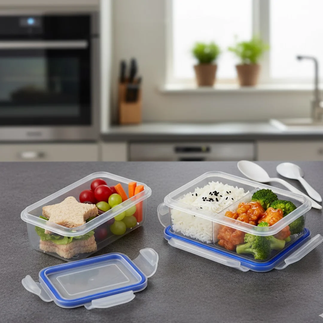 7070 Multipurpose Air Tight 4 Side Lock Food Grade Lunch Box With Small Square Container