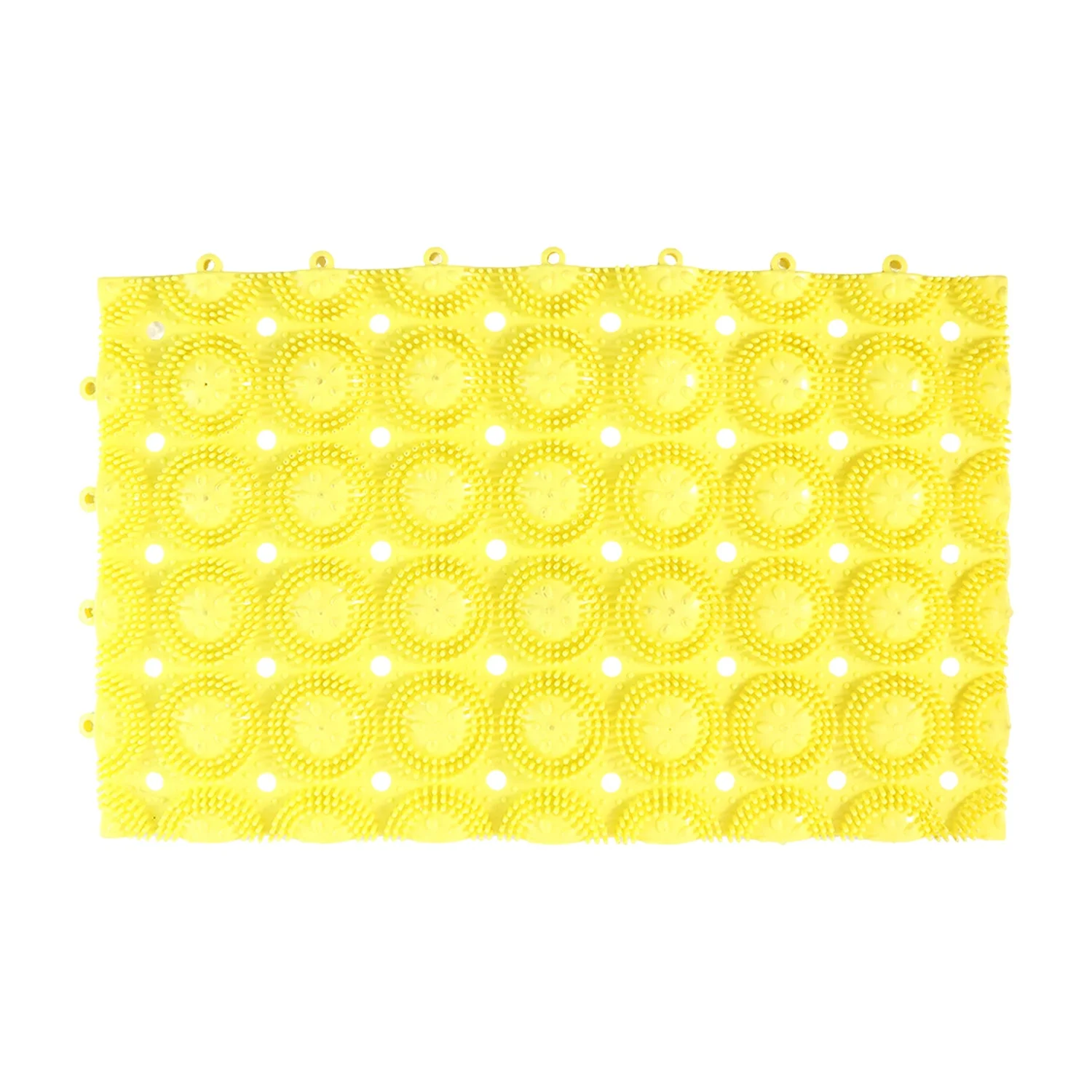 This multipurpose anti-slip bathroom massage mat is designed to provide safety, comfort, and gentle massage during daily bathing routines. Featuring a textured surface with raised circular nodes, it helps stimulate feet and body while standing or leaning during a shower. The strong suction grip at the base ensures firm placement on wet surfaces, reducing the risk of slipping. Its water-drain holes allow quick drying, making it hygienic and suitable for regular bathroom use.