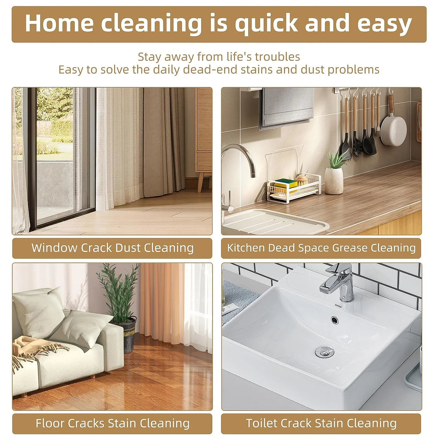 Cleaning kitchen sinks, gas stove areas, and tile gaps