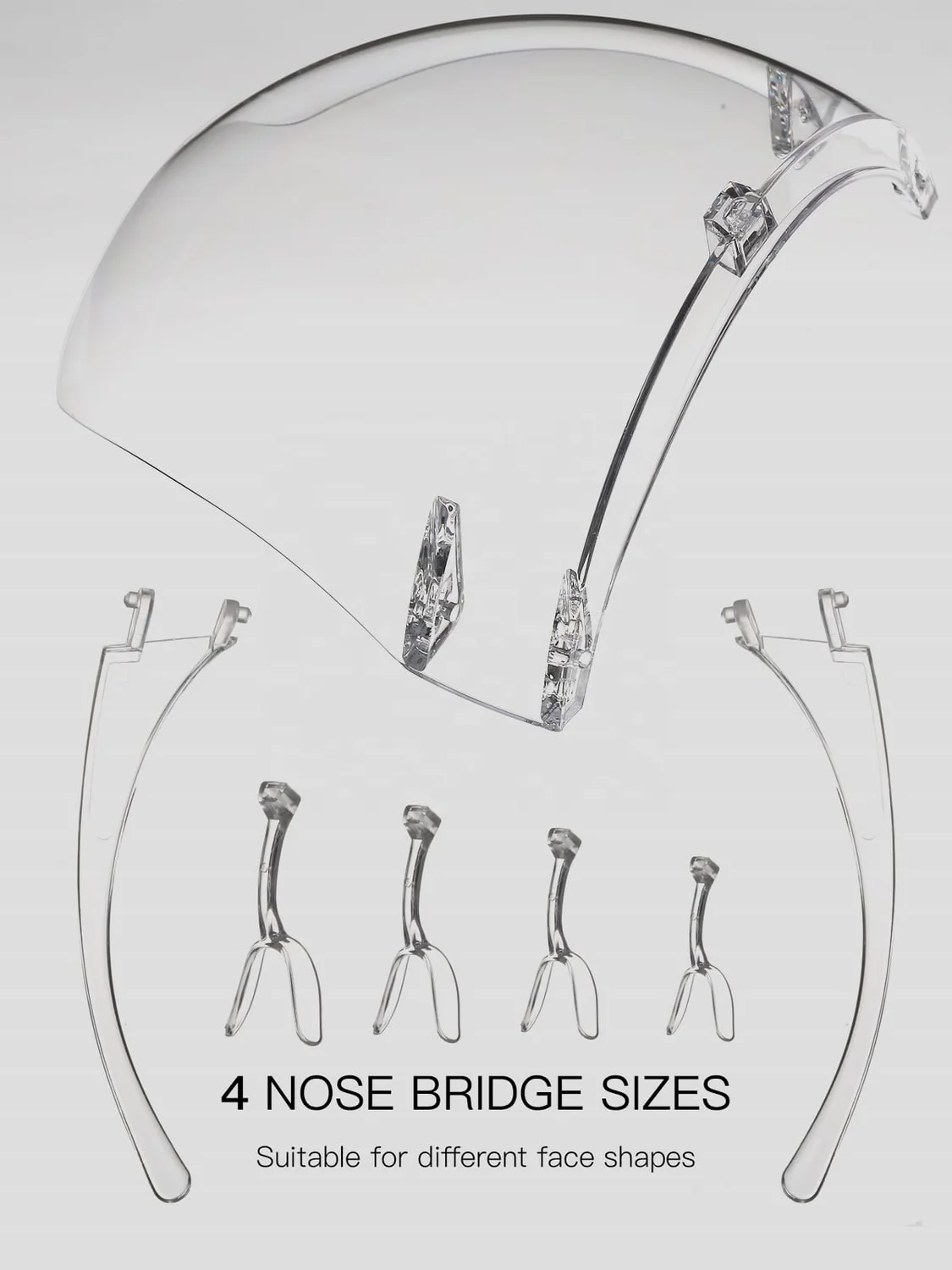 Face shield Splash Protection is light and durable frame for continuous wearing. It helps to cover eyes, nose and mouth. It aims to protect the wearer's entire face (or part of it) from hazards such as flying objects and road debris, chemical splashes (in laboratories or in the industry), or potentially infectious materials (in medical and laboratory environments).