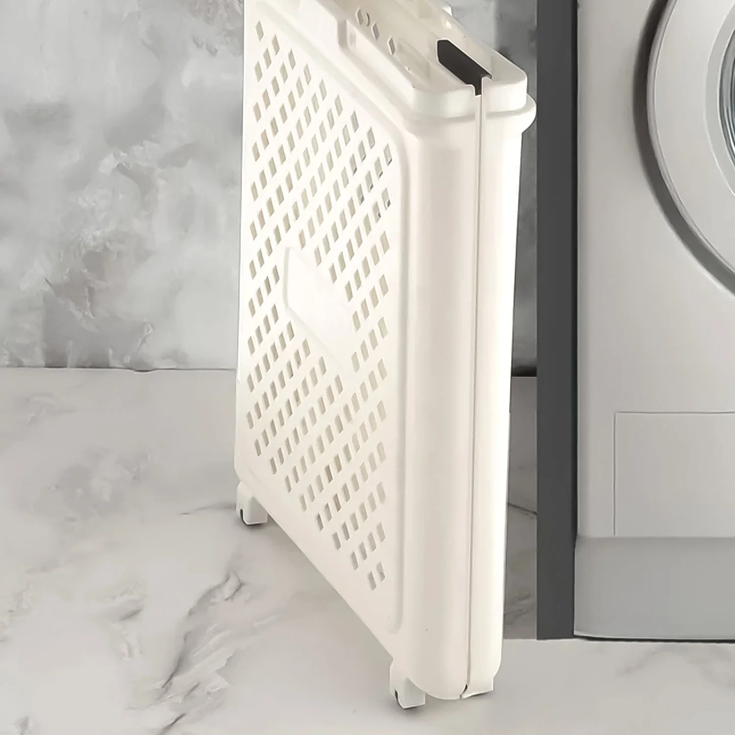 Multipurpose Foldable Laundry Basket with Wheels and Ventilation Holes | Portable Plastic Clothes Storage Hamper for Bedroom, Bathroom & Laundry Room | Rolling Utility Laundry Bin with Lidless Design – 1 Pc