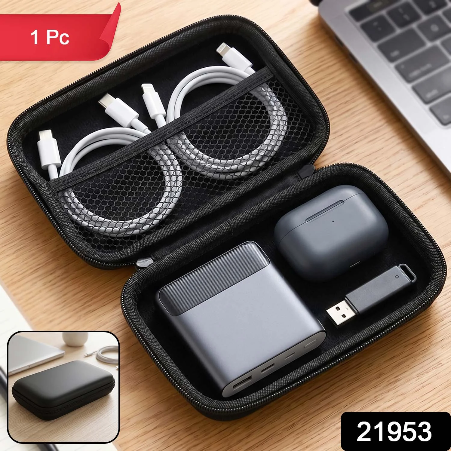 Multi Hard Shell Travel Zipper Case for Cables, USB Drives, AirPods, and Small Electronics, Durable Organizer Case, (1 Pc, Only case Included)