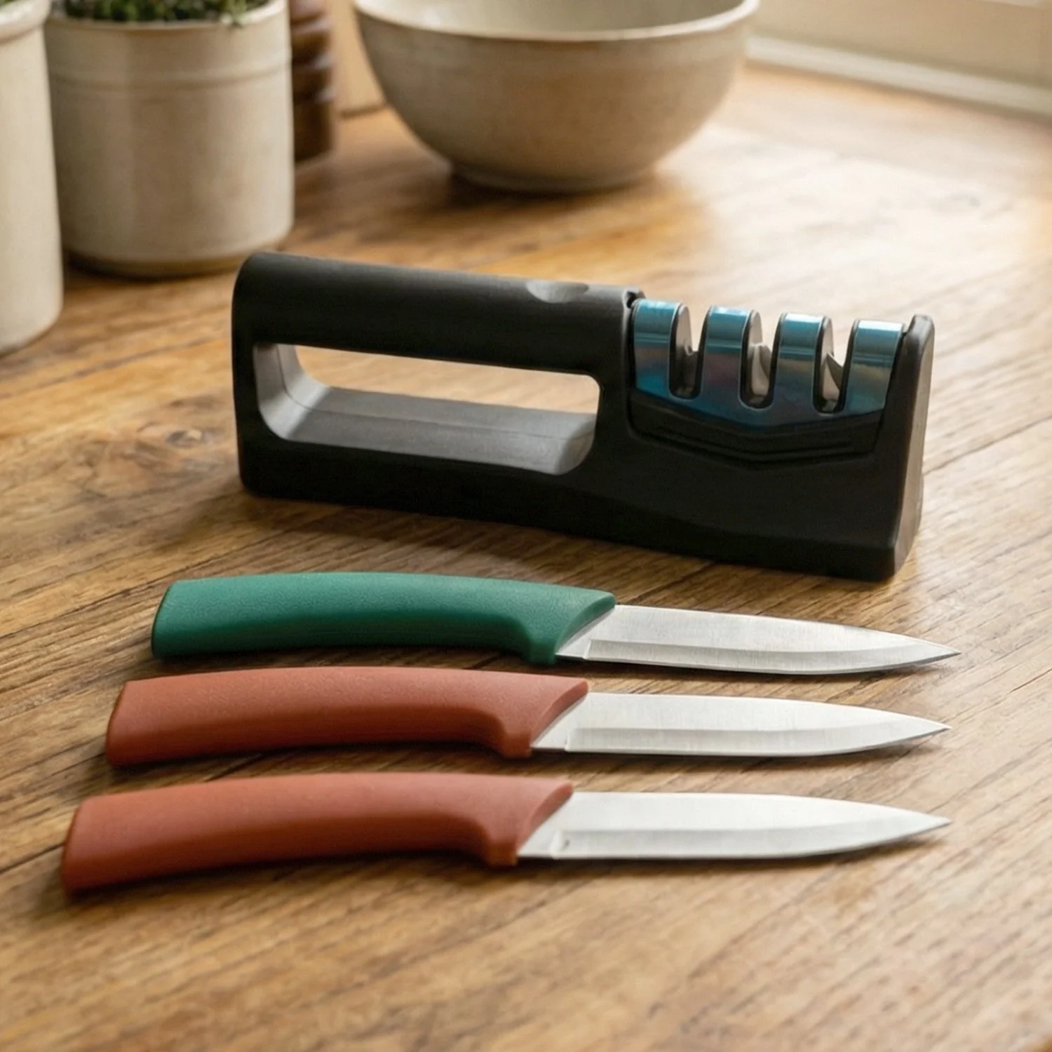 Manual knife sharpener helps maintain long-lasting sharpness