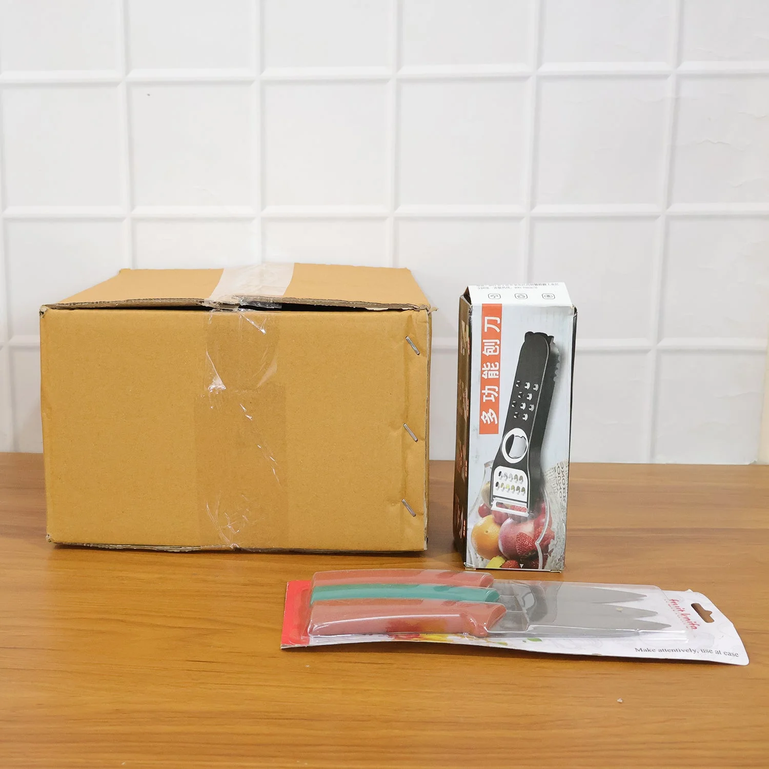 This 3 piece kitchen knife set with manual knife sharpener is designed to handle everyday cutting and slicing tasks with ease. The set includes three sharp kitchen knives suitable for vegetables, fruits, and general food preparation, along with a compact manual sharpener to maintain blade sharpness. The ergonomic handles provide a comfortable grip for controlled cutting, while the sharpener helps extend the life of the knives. A practical and essential combo for every modern home kitchen.
